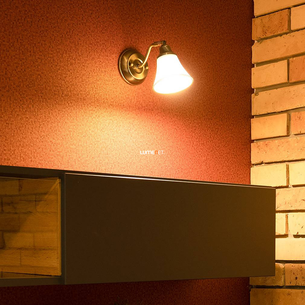A Grando Rábalux 6545 fali spot lámpa klasszikus stílusban készült, bronz és fehér színkombinációval, fém és üveg anyaghasználattal. Egy darab E14-es foglalattal rendelkezik, amelybe cserélhető fényforrás helyezhető, így a fényáram, színhőmérséklet és teljesítmény a választott izzótól függ. A lámpatest nem szabályozható, IP20-as védettséggel ellátott, így beltéri használatra alkalmas. Méreteit tekintve 240 mm hosszú, 110 mm átmérőjű és szélességű, valamint 140 mm magas. A termék tömege 0,63 kg, csomagolási méretei 19 cm szélesség, 13 cm hosszúság és 16 cm magasság. A lámpatest nem tartalmaz fényforrást, a gyártó a Rábalux.