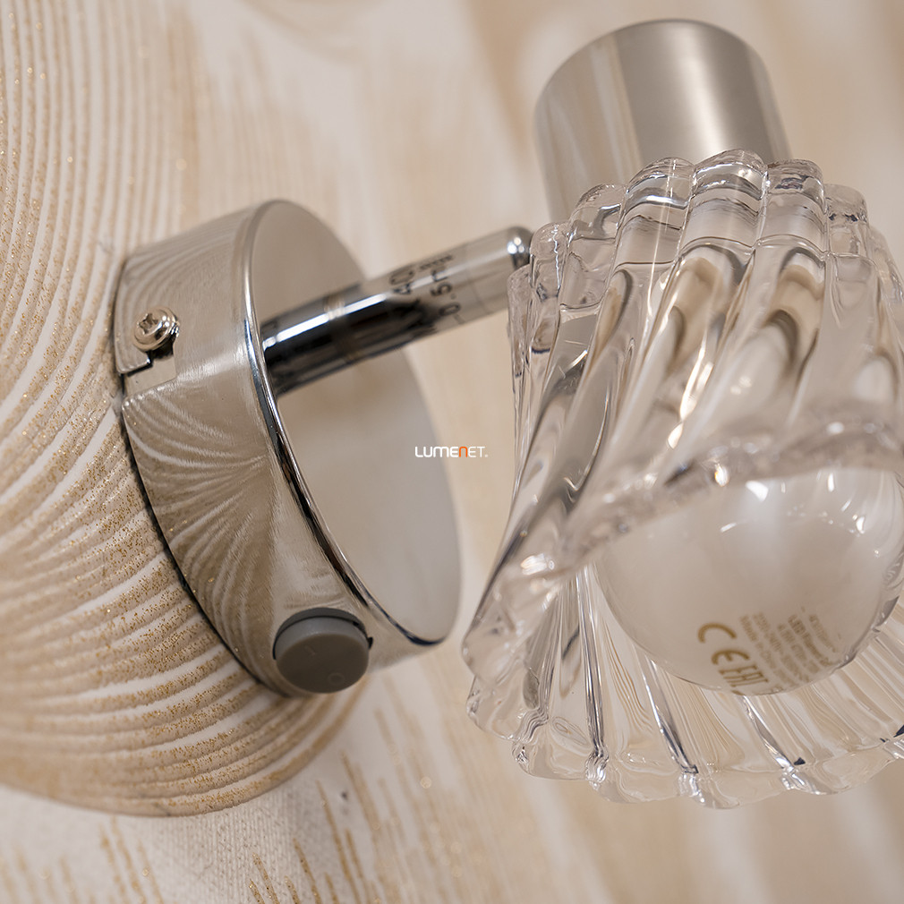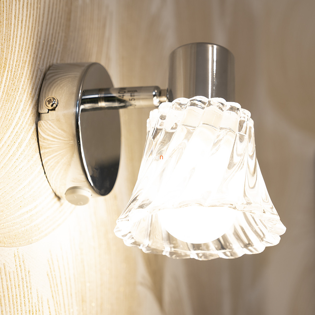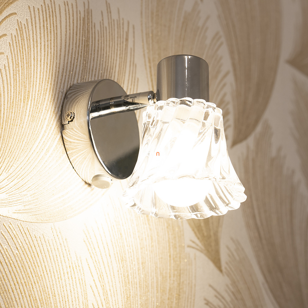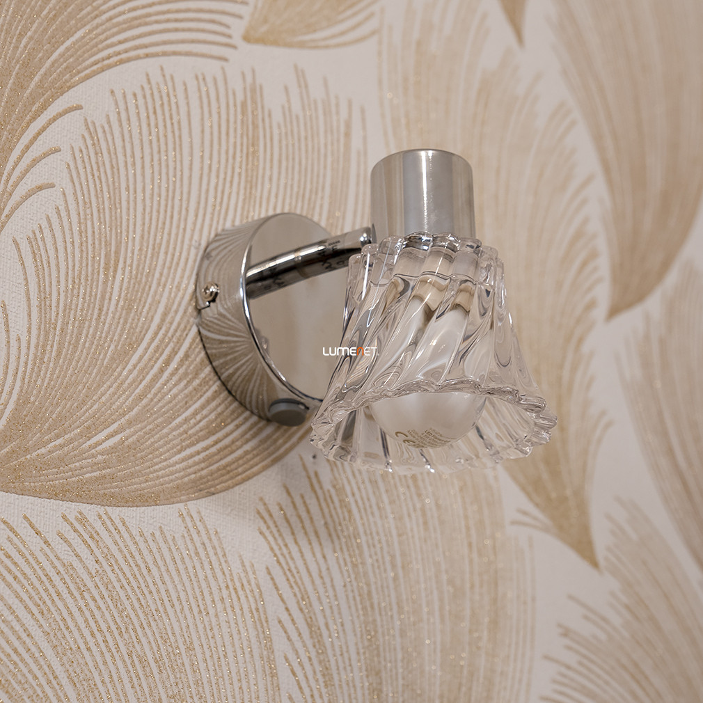 A Hestia Rábalux 5299 fali üveg lámpa modern kialakítású lakásvilágítási megoldás, melynek lámpateste fém és üveg anyagból készült, króm és áttetsző színkombinációval. A termék E14 foglalattal rendelkezik, egy darab cserélhető fényforrás használatát teszi lehetővé, amely nem tartozék. A lámpa kapcsolóval van ellátva, nem szabályozható, védettségi szintje IP20, így beltéri használatra alkalmas. Méretei: 130 mm hosszúság, 95 mm szélesség és 115 mm magasság, tömege 0,46 kg. A csomagolás méretei: 14 cm szélesség, 10 cm hosszúság és 13 cm magasság. A terméket a Rábalux gyártja, logisztikai kódja 5299.
