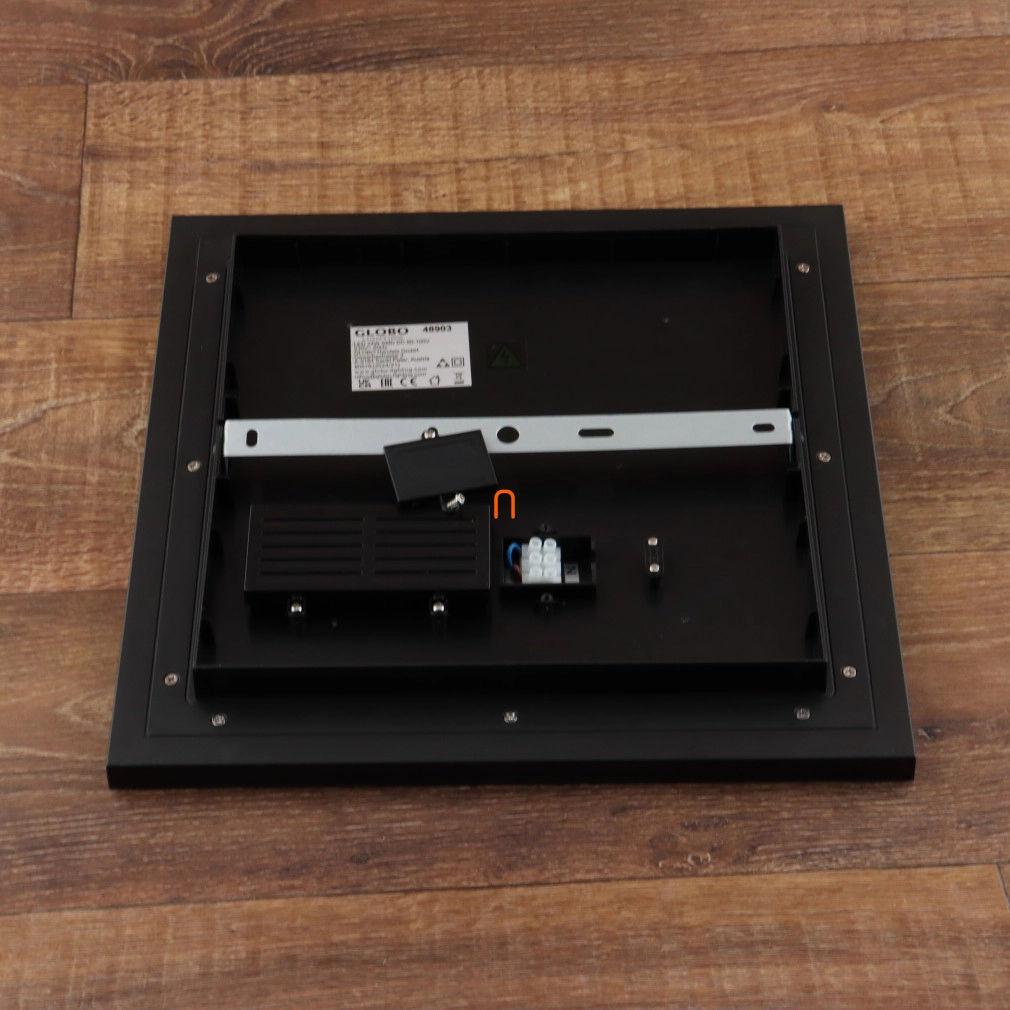 A Davies Globo 48903 mennyezeti LED lámpa falikapcsolóval szabályozható, modern lakásvilágítási megoldás. A lámpatest 12 W teljesítményű, beépített LED modullal rendelkezik, amely 980 lumen fényáramot biztosít hidegfehér, 4000 K színhőmérséklettel. A fényforrás memória funkcióval ellátott, így a korábban beállított fényerő megmarad a ki- és bekapcsolás után is. A lámpa matt fekete fém és opál műanyag kombinációjából készült, méretei 330x330x35 mm, védettsége IP20. A termék 230 V névleges feszültségen működik, tömege 1,15 kg. A csomag tartalmazza a LED fényforrást, így azonnal üzembe helyezhető.