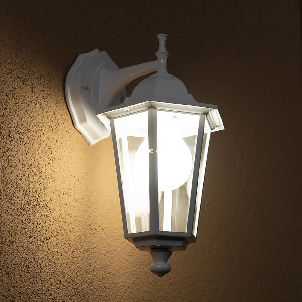 Biztosak vagyunk benne, hogy a Rábalux 8201 Velence kültéri fali lámpája a te házad falán is remekül mutat majd! Az átlagosnál mutatósabb, fémből és műanyagból, fehér színben készülő falikar ideális bejárati ajtó, garázs vagy udvar megvilágítására. IP43 védett, tehát ellenáll a pornak és a függőlegesen érkező fröccsenő víznek is.