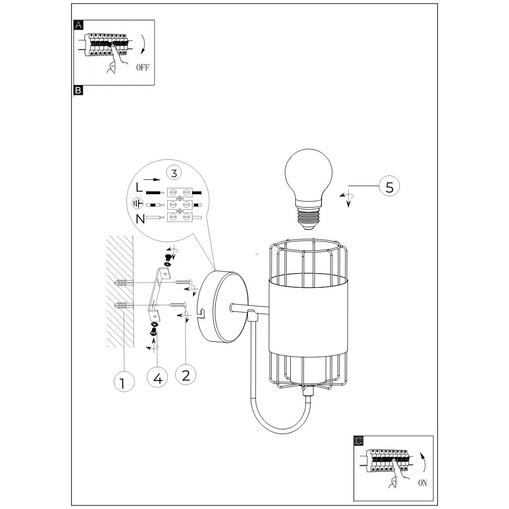 A Dimitri Rábalux 3123 fali lámpa fekete fém vázzal készül, vintage stílusú kialakításban. A lámpatest egy darab E27 foglalattal rendelkezik, amelybe cserélhető fényforrás helyezhető, így a fényáram, színhőmérséklet és teljesítmény a kiválasztott izzótól függ. A termék nem szabályozható, védettségi besorolása IP20, így beltéri használatra alkalmas. Méretei: 190 mm hosszúság, 100 mm szélesség és 220 mm magasság, tömege 0,65 kg. A csomagolás méretei: 20 cm szélesség, 12 cm hosszúság és 22 cm magasság. A lámpa nem tartalmaz fényforrást. Gyártója a Rábalux.