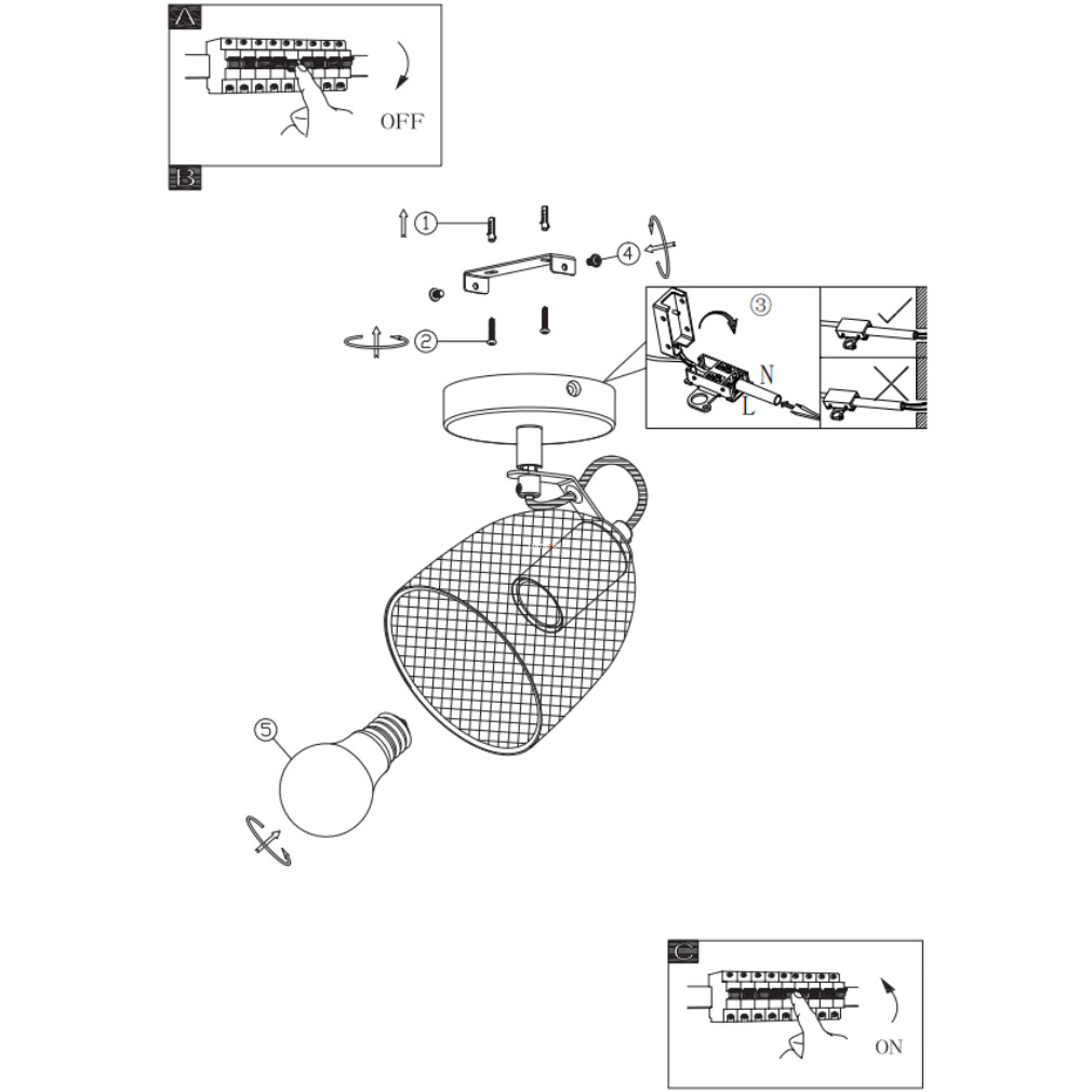 Fém hálós fali lámpa fekete színben - Josina Globo 54034-1