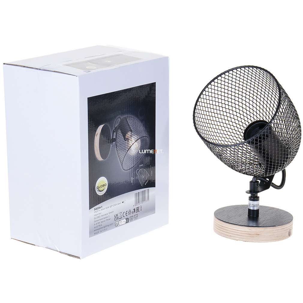 A Josina Globo 54034-1 fém hálós fali lámpa modern, fekete színű kivitelben készül, amelyet fa elemek egészítenek ki. A lámpatest 236 mm hosszú, 130 mm széles és 172 mm magas, tömege 0,49 kg. Egy darab E27 foglalattal rendelkezik, amelybe cserélhető fényforrás helyezhető, így a fényáram, a színhőmérséklet és a teljesítmény is a választott izzótól függ. A lámpa nem szabályozható, fényforrást nem tartalmaz. IP20-as védettségi szintje beltéri használatra teszi alkalmassá. A csomagolás mérete 14 x 19 x 25 cm, a gyártó a Globo.