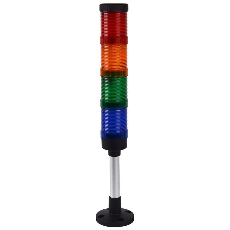 Fényjelző oszlop, függőleges alap, (hangjelzővel) AC/DC24V, R,Y,G,B, IP65 NYG3-50RYGBM Tracon