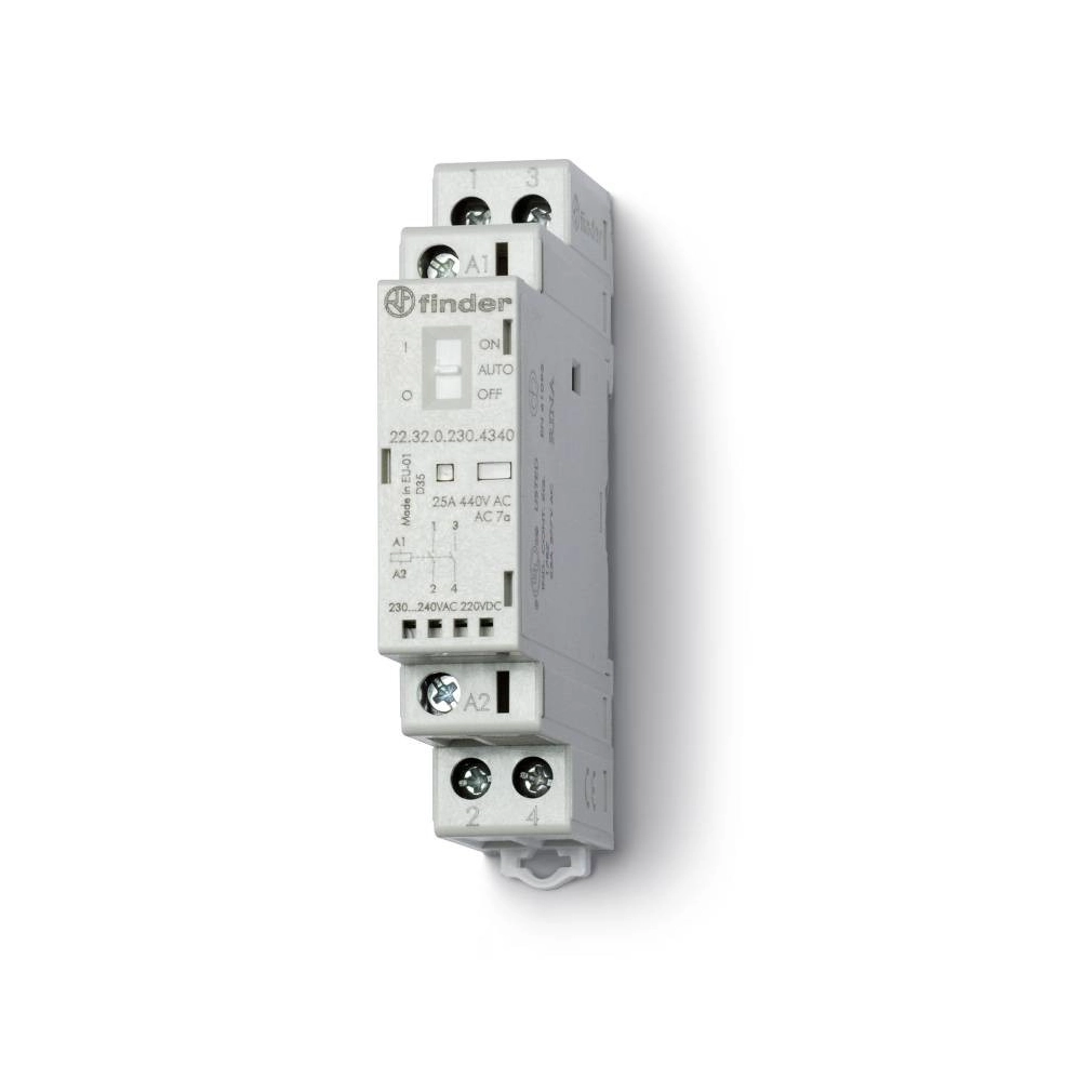 Finder 22.32.0.012.4340 Installációs mágneskapcsoló, kontaktor, 25A, 2NO, 12V AC/DC