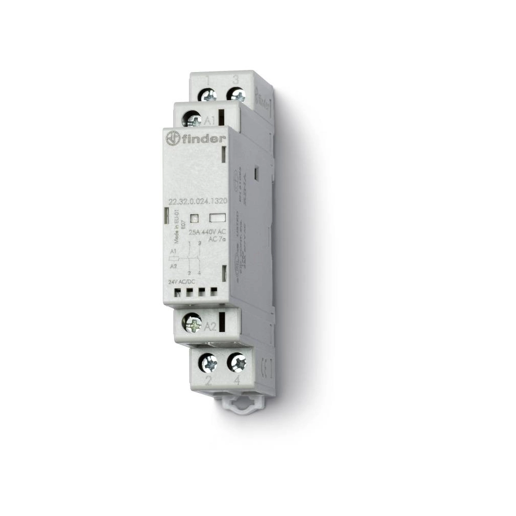Finder 22.32.0.230.1320 Installációs mágneskapcsoló, 2 záróérintkező 25 A, tápfeszültség: 230 V AC/DC, LED + mech. állapotjelzés