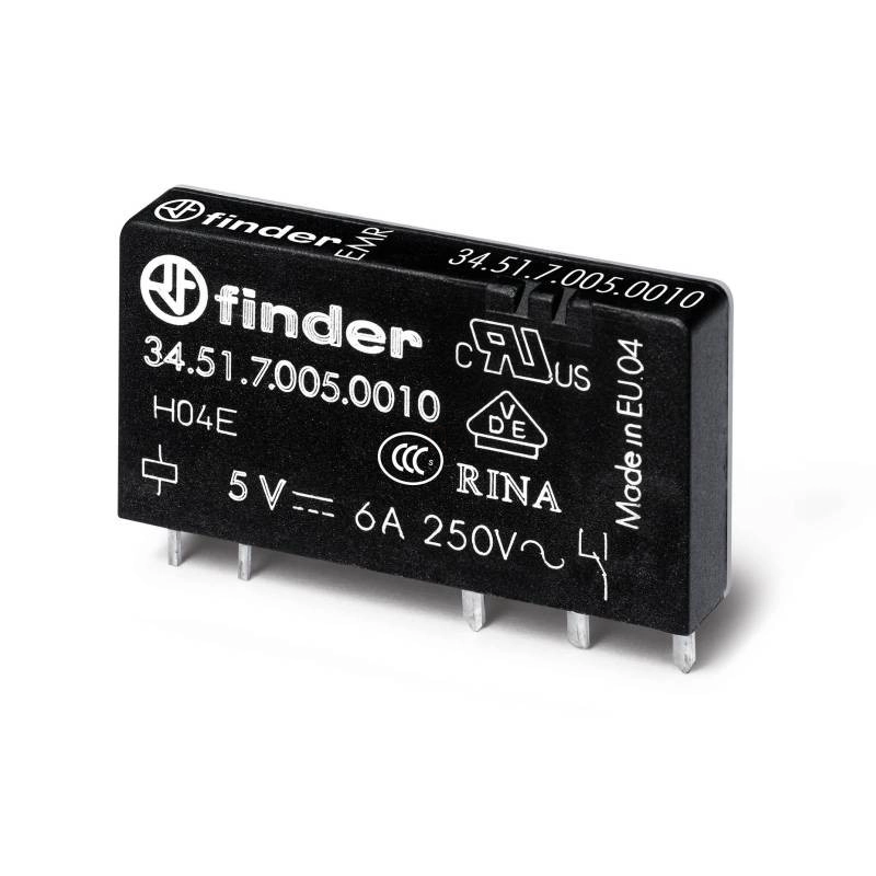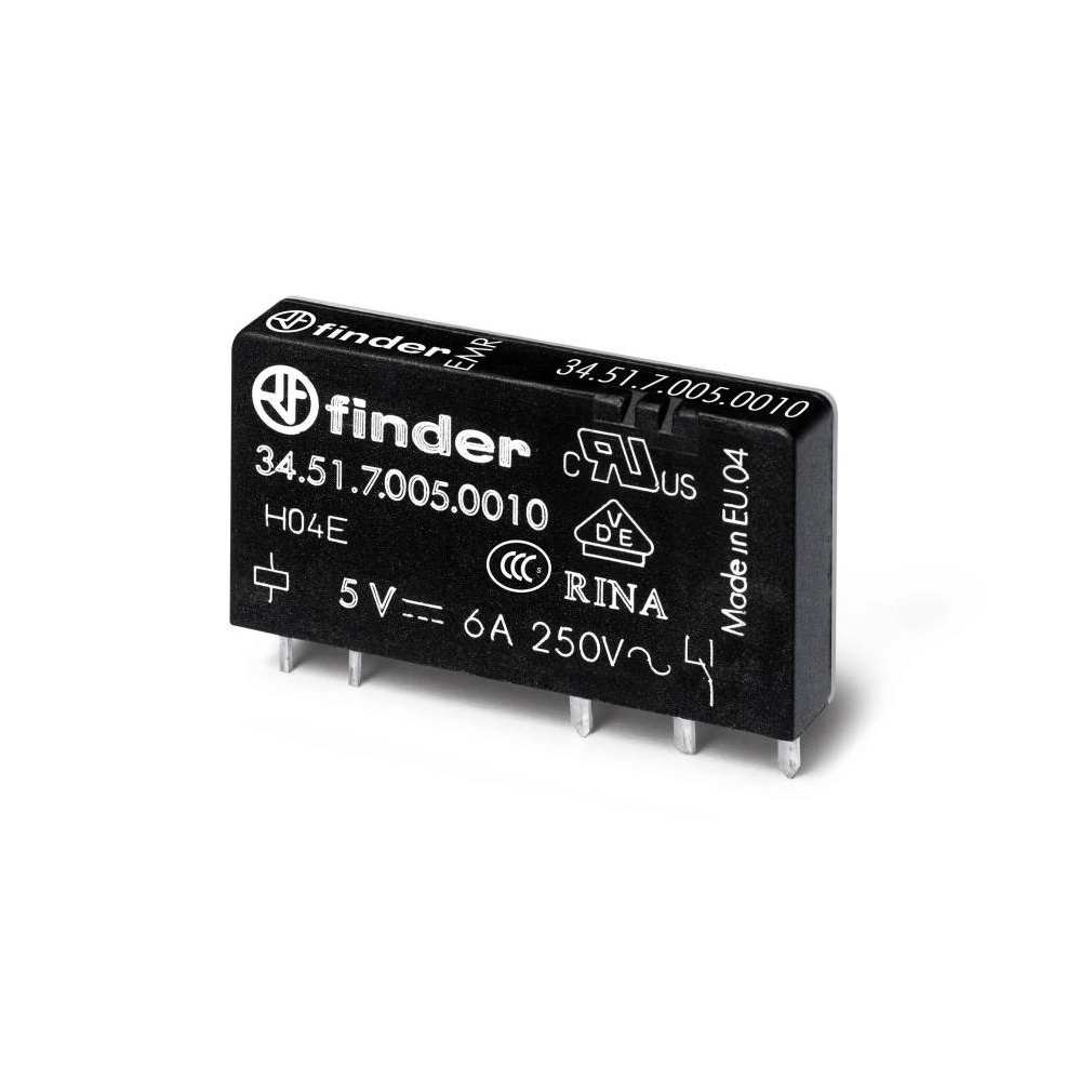 FINDER 34.51.7.005.0010 Ultravékony print- / dugaszolható relé, 1 váltóérintkező 6 A, : 5 V DC érzékeny