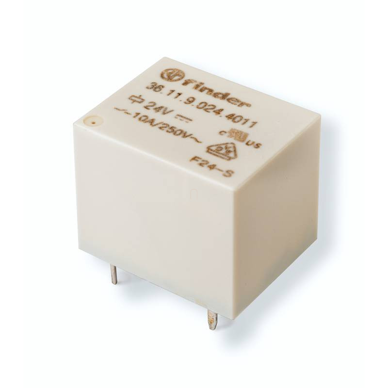 \nPrintrelé, 1 váltóérintkező 10 A/250 V AC, érintkező anyag: AgSnO₂, tekercsjellemzők: 6 V DC, 0,36 W, 100 Ohm, bemártó tisztításra alkalmas kivitel (RT III)