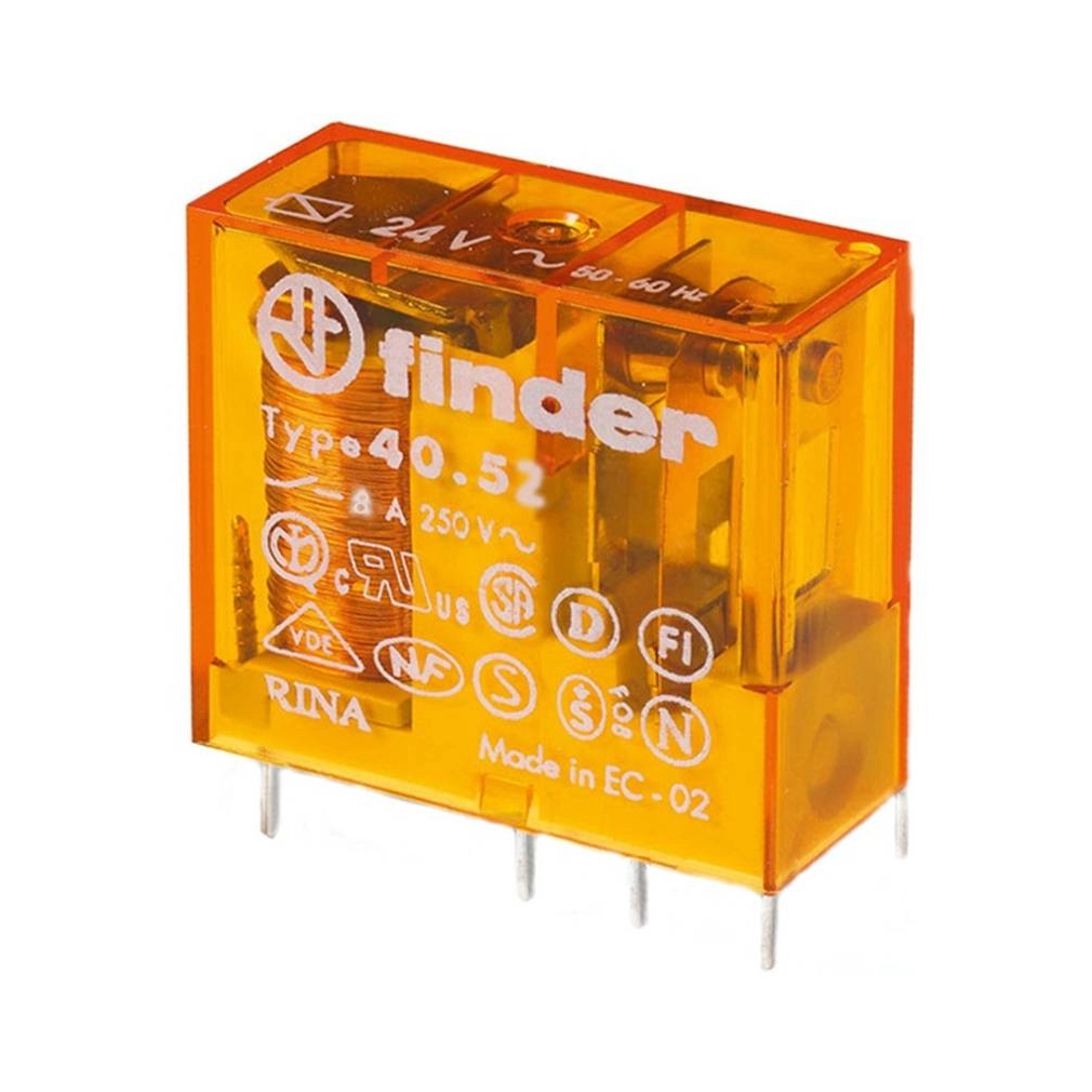 Finder 40.52.8.024.5000 miniatűr print-/ dugaszolható relé, 2 váltóérintkező 8 A, érintkezőanyag: AgNi+Au, : 24 V AC