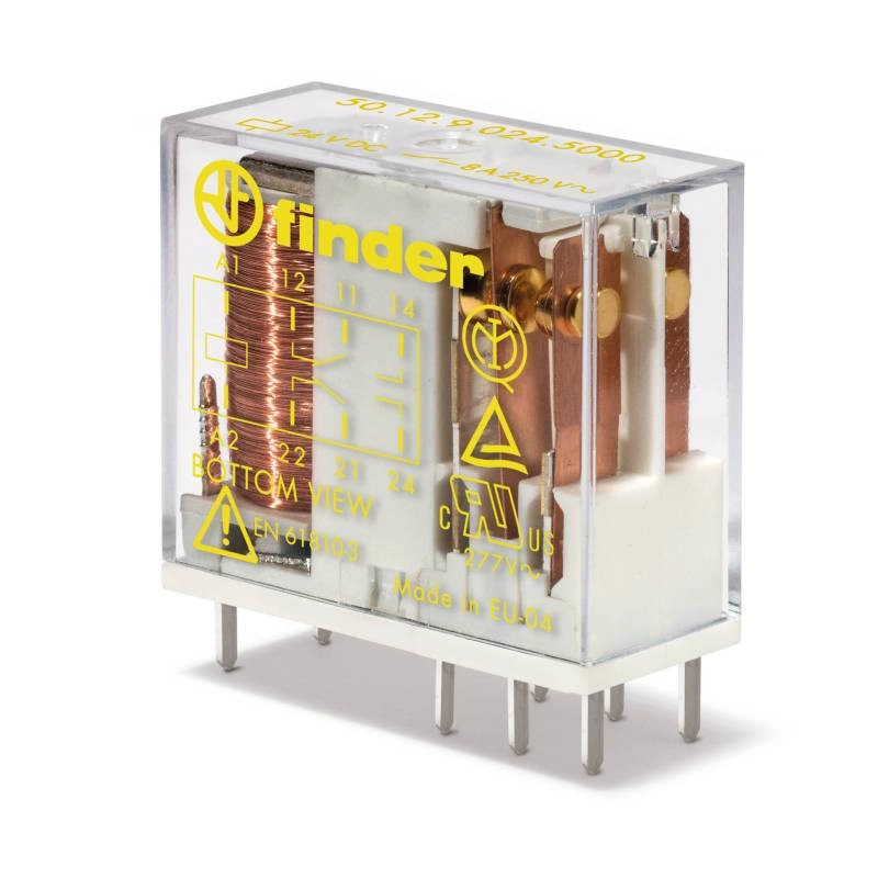 FINDER 50.12.9.024.5000 Miniatűr biztonsági printrelé 2v, 8A érintkező anyag: AgNi+Au