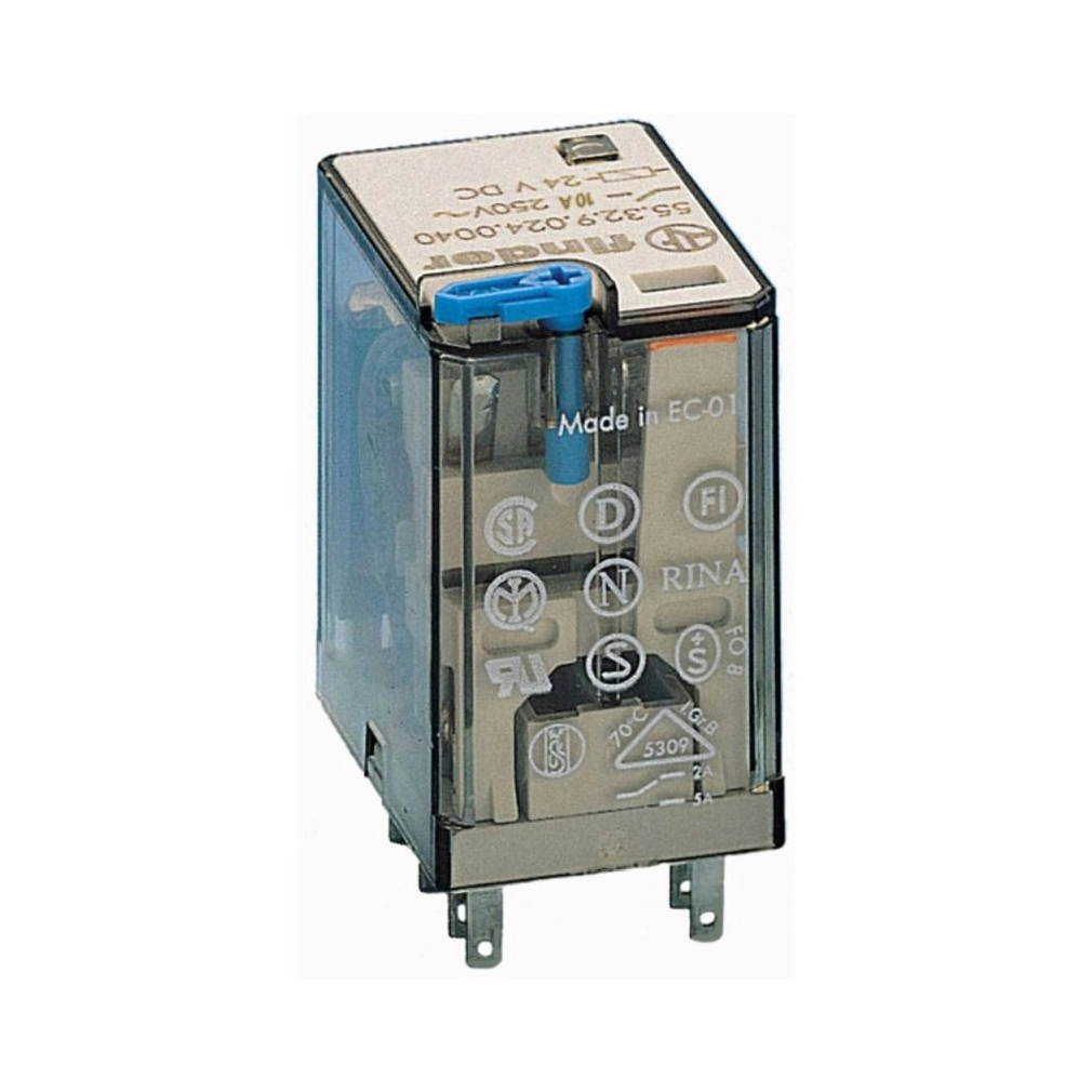 FINDER 55.32.9.024.0070 55.32.7.024.0070 relé 24VDC 2 váltó, 10A, LED, tesztgomb