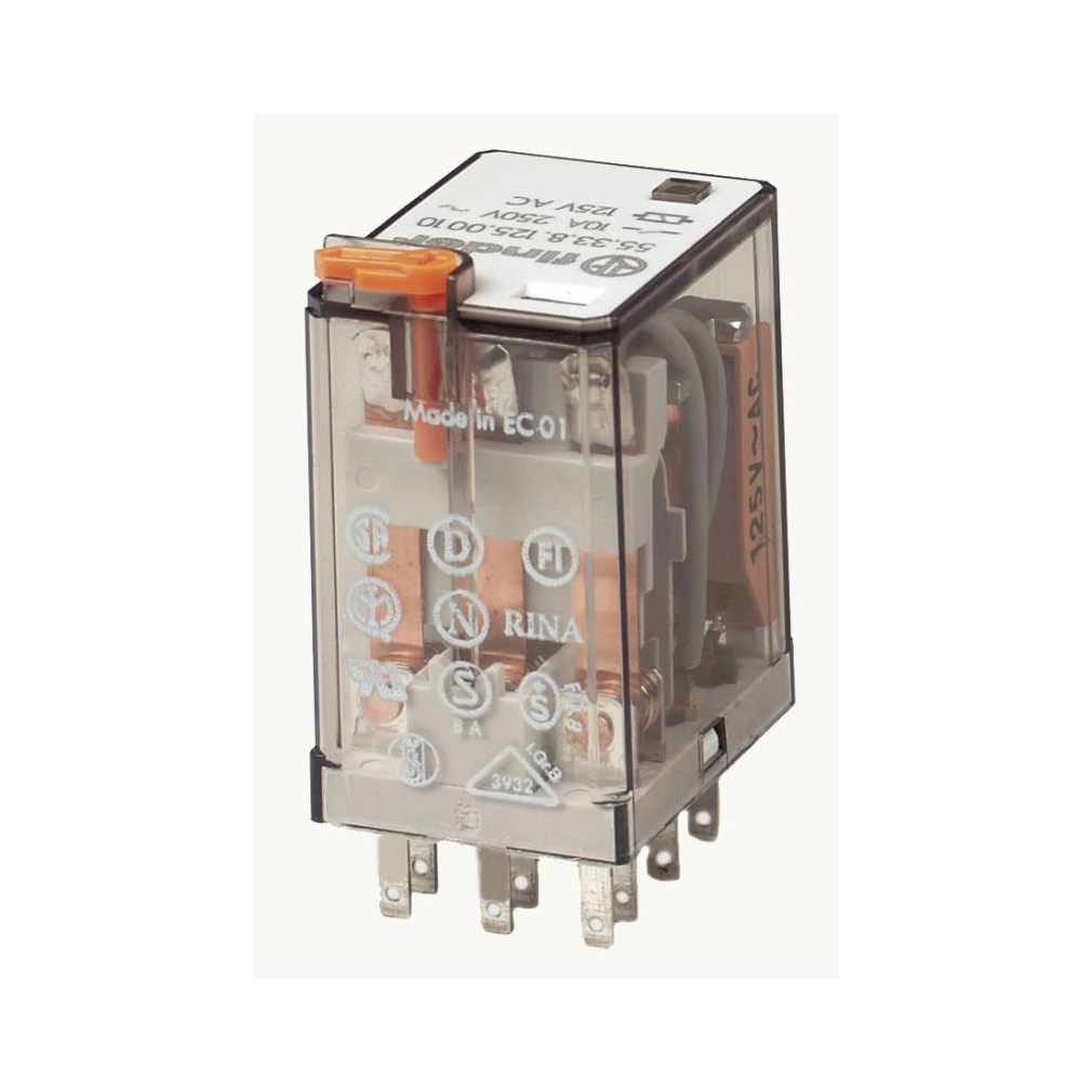 FINDER 55.33.8.230.0050 miniatűr ipari relé 3CO(váltó) 10A 230V AC, LED-es