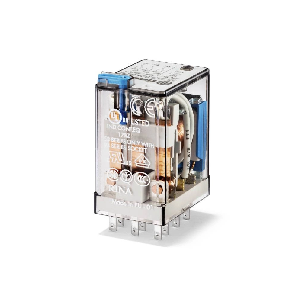 \nMiniatűr ipari relé, 94-es foglalatba dugaszolható,