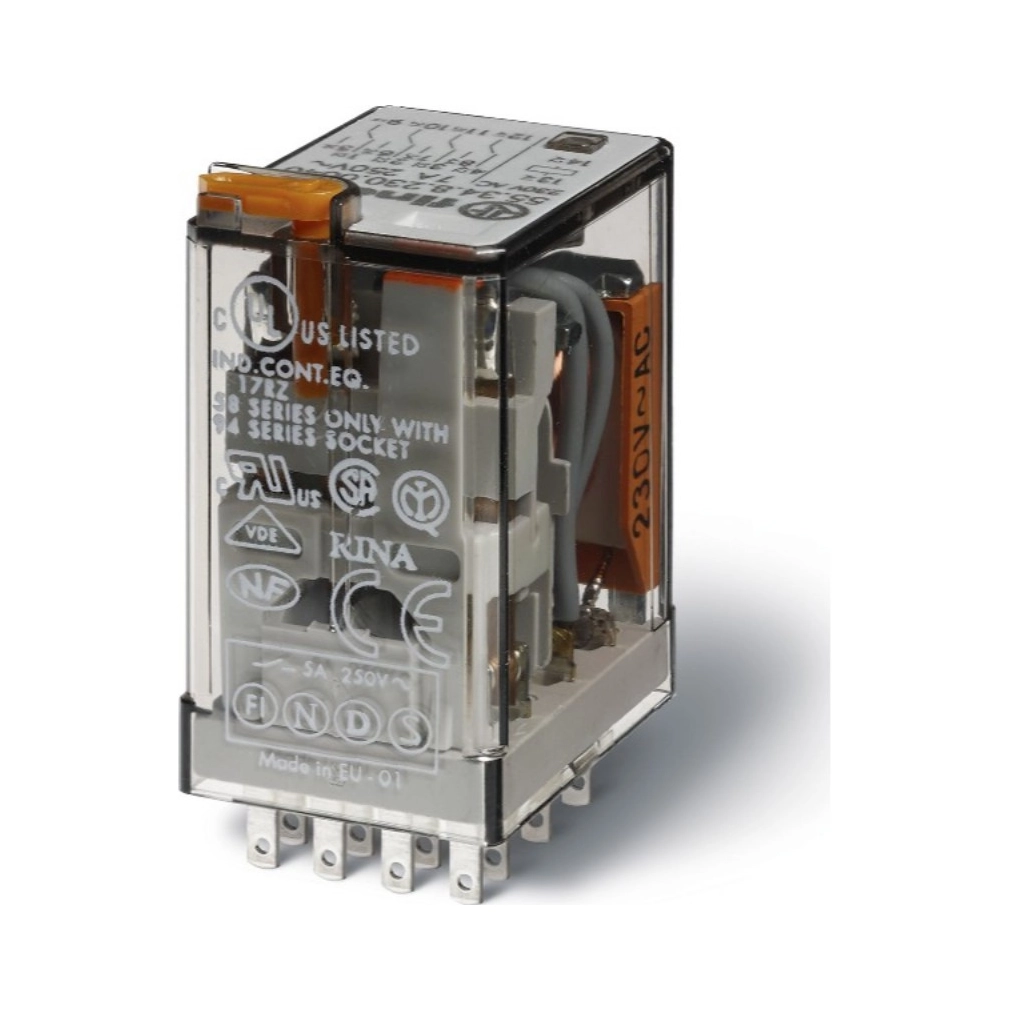 FINDER 55.34.9.024.5094 miniatűr ipari relé 4CO(váltó) 7A 24V DC, LED+védődióda+mech.állapotjelzés