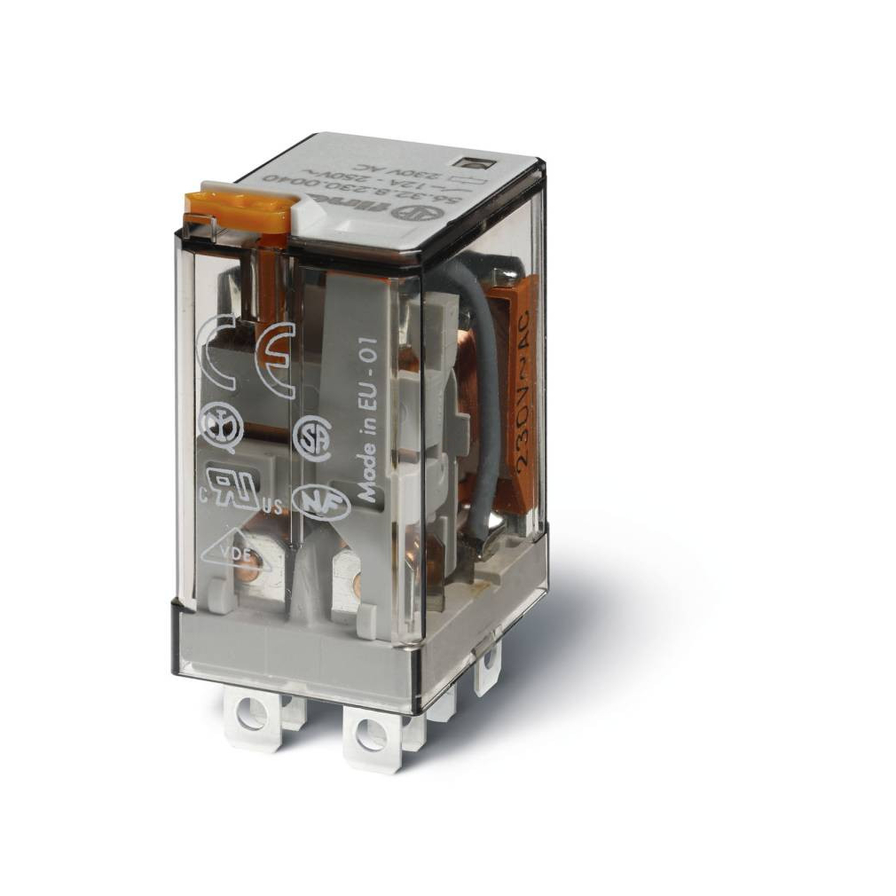 Finder 56.32.8.230.0040 miniatűr teljesítményrelé 2CO(váltó) 12A 230V AC mech.állapotjelzés