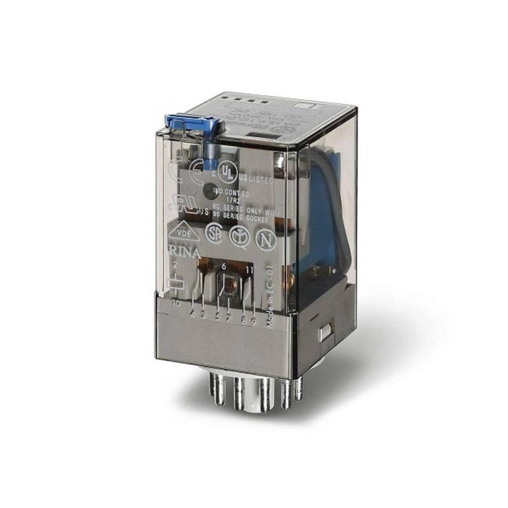 FINDER 60.13.8.230.0020 relé 3CO(váltó) 10A 230V AC, 11 lábú, mech. állapotjelzés