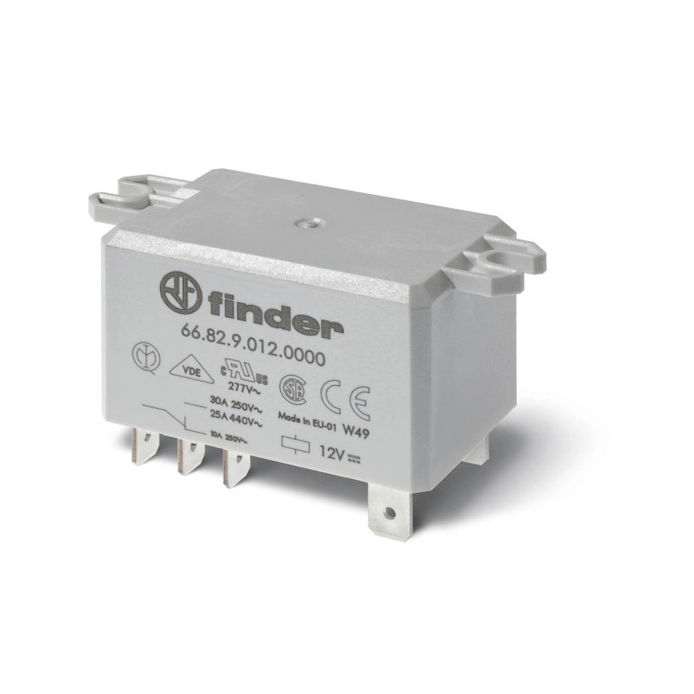FINDER 66.82.9.012.0000 Teljesítményrelé, Faston 250, 2 váltóérintkező 30 A, : 12 V DC
