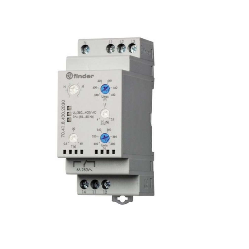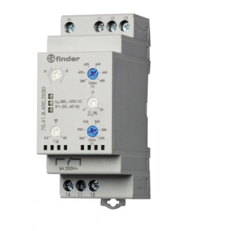FINDER 70.62.8.400.0000 Fesz. felügyeleti relé, háromfázisú, névleges feszültség: (208...480)V AC, 2 váltóérintkező 8 A
