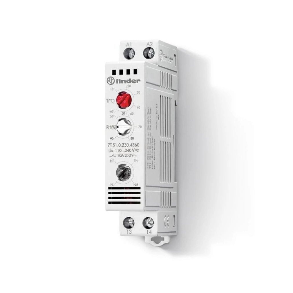 FINDER 7T.51.0.230.4360 Termosztát és higrosztát kapcsolószekrénybe, 1 záróérintkező 10 A