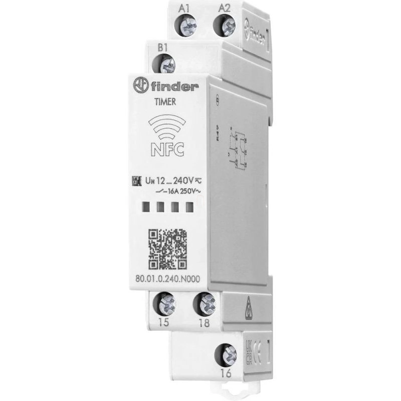FINDER 80.01.0.240.N000 időrelé 1CO 16A 12-240V AC/DC többfeszültségű többfunkciós, NFC segítségével programozható