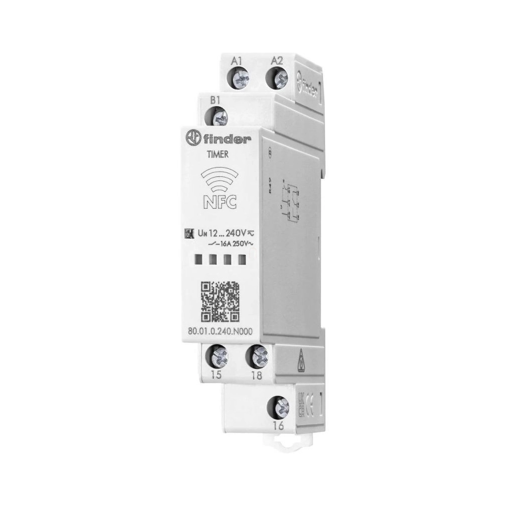 Finder 80.01.0.240.N000 időrelé 1CO 16A 12-240V AC/DC többfeszültségű többfunkciós, NFC segítségével programozható