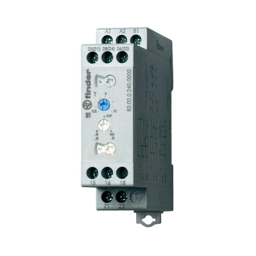 \nIdőrelé, többfunkciós, 35 mm-es szerelősínre pattintható, 22,5 mm széles, 2 váltóérintkező 12 A / 250 V AC,