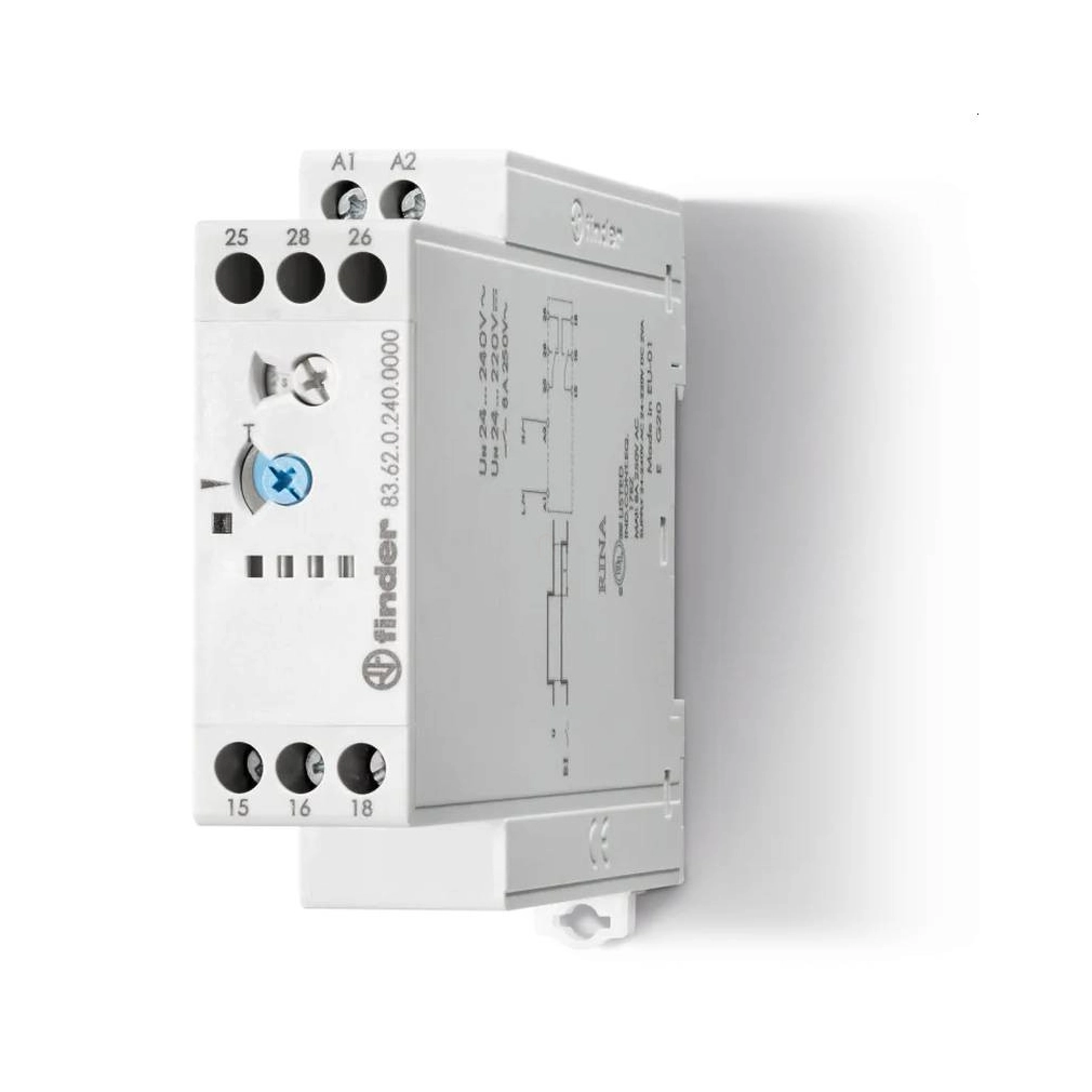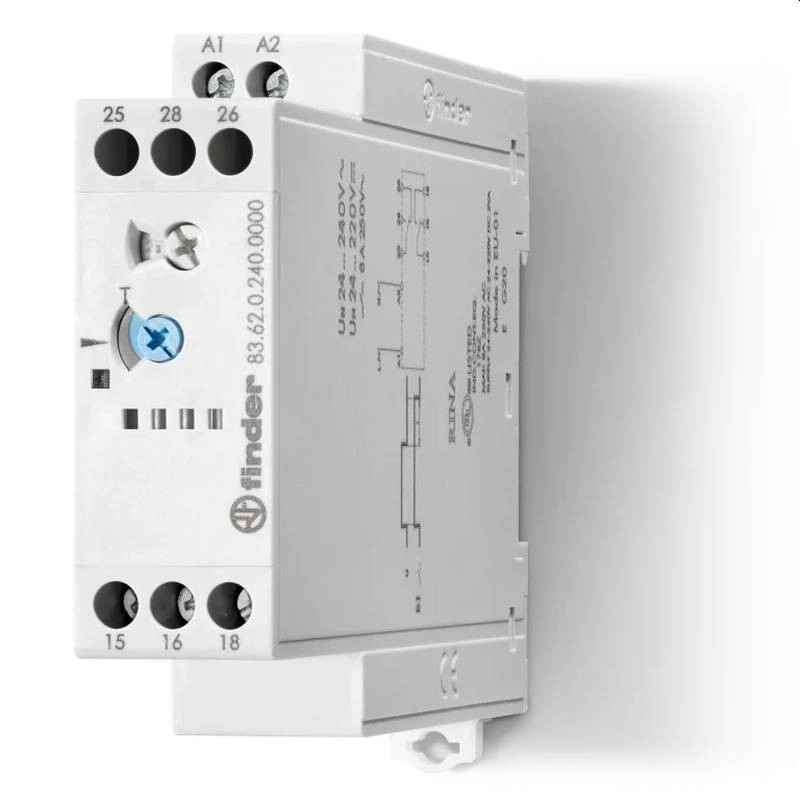 \nIdőrelé, egyfunkciós, 35 mm-es szerelősínre pattintható, 22,5 mm széles,