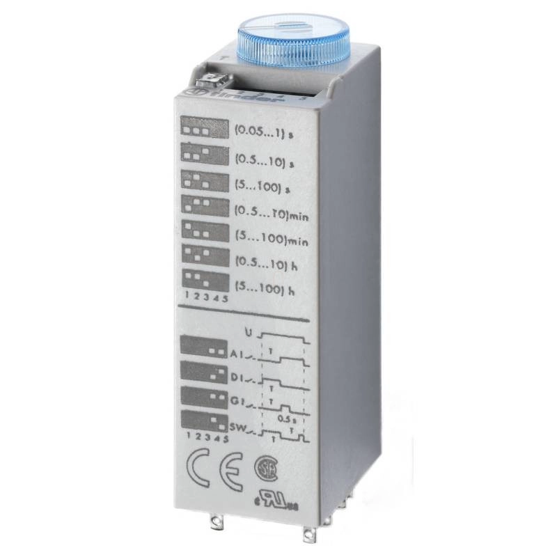 funkciók: meghúzás késleltetés, bekapcsolással törlő, szimmetrikusan villogó relé impulzusindítással, impulzusadó (0,5 s),