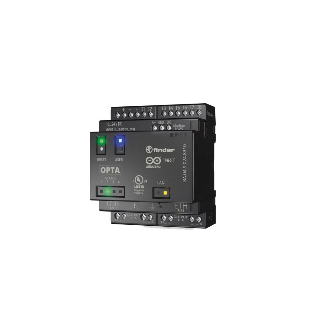 FINDER 8A.04.9.024.8310 OPTA programozható logikai relé, tápfeszültség (12…24)V DC, 8 digit/analóg bemenet, 4 relékimenet 10 A, USB-C, Ethernet, RS485 MODBUS