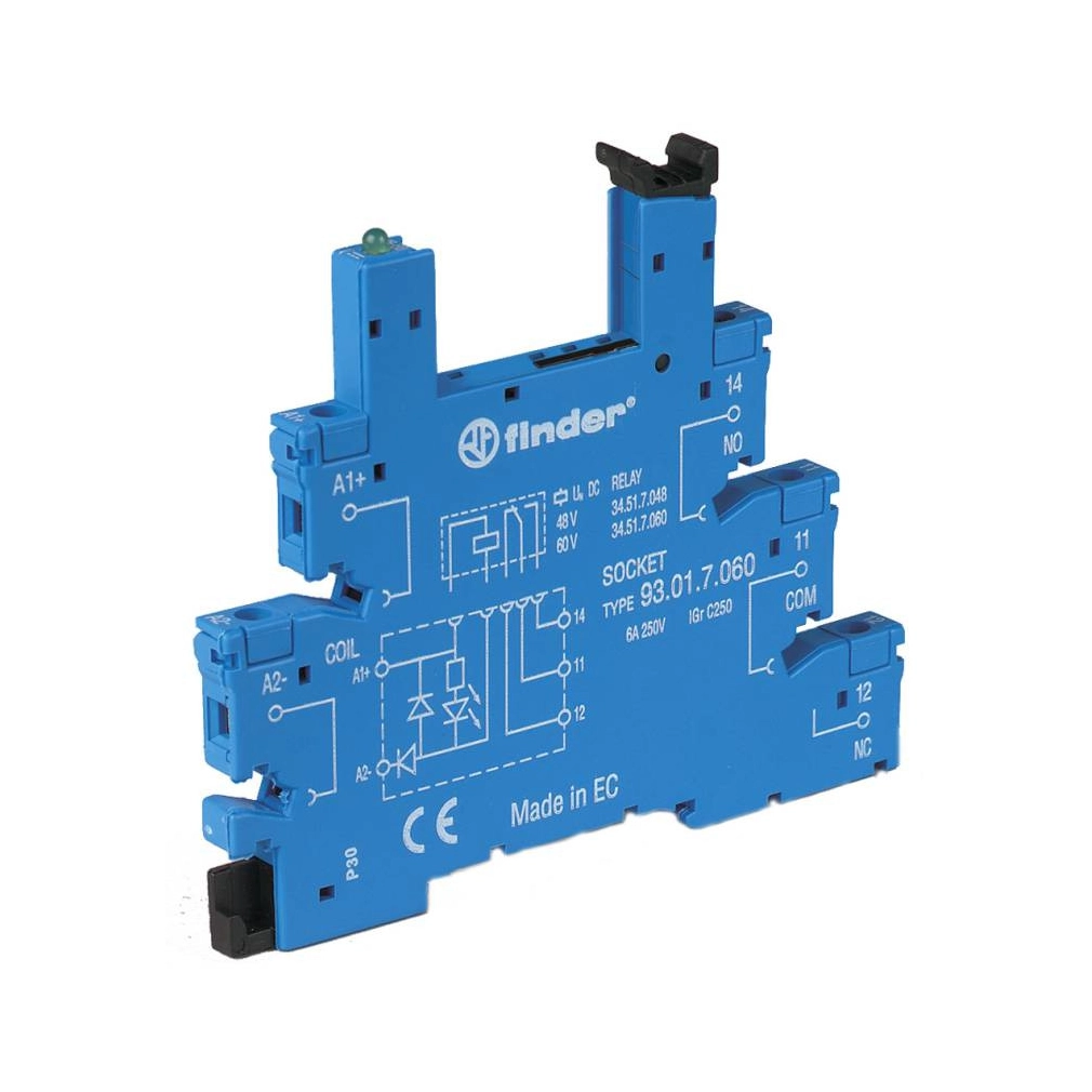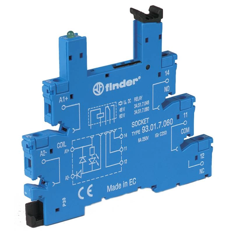 FINDER 93.01.7.060 Foglalat csavaros csatlakozással, relé típusa: 34.51 vagy 34.81, vezérlőfeszültség: (48...60)V DC