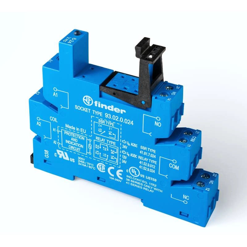 \nFoglalat csavaros csatlakozással, 35 mm-es szerelősínre pattintható, kék, relé típusa: 41.52/61, integrált kiemelő- és rögzítőkengyel, beépített LED-es állapotjelzés és EMC védőkapcsolás: vezérlőfeszültség: 6-12-24 V AC/DC