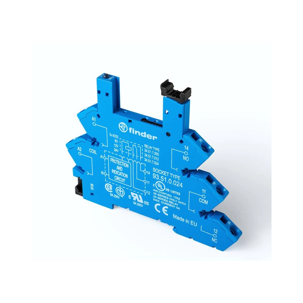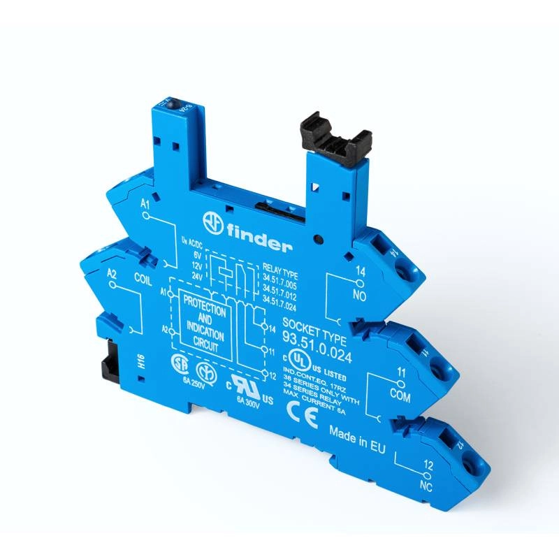 Finder 93.51.0.024 foglalat húzórugós csatlakozással, relé típusa: 34.51 vagy 34.81, vezérlőfeszültség: (6...24)V AC/DC