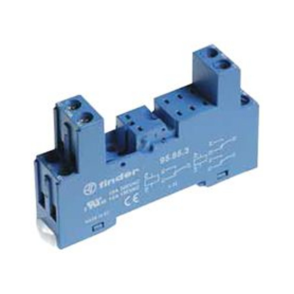 \nFoglalat csavaros csatlakozással, 35 mm-es szerelősínre pattintható, relé típusa: 40.51, 40.52, 40.61, 44.52 vagy 44.62, dugaszolható modul típusa: 99.80, kék