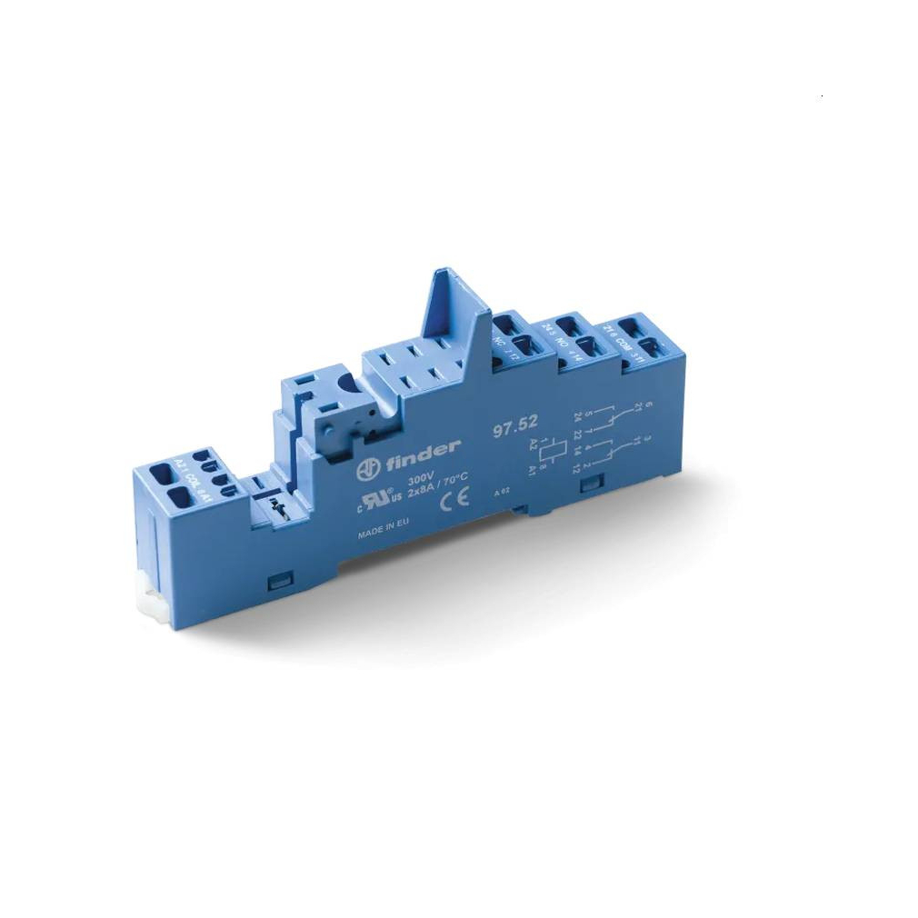 Finder 97.52.7 foglalat húzórugós csatlakozással, relé típusa: 46.52T, vasúti alkalmazásokhoz