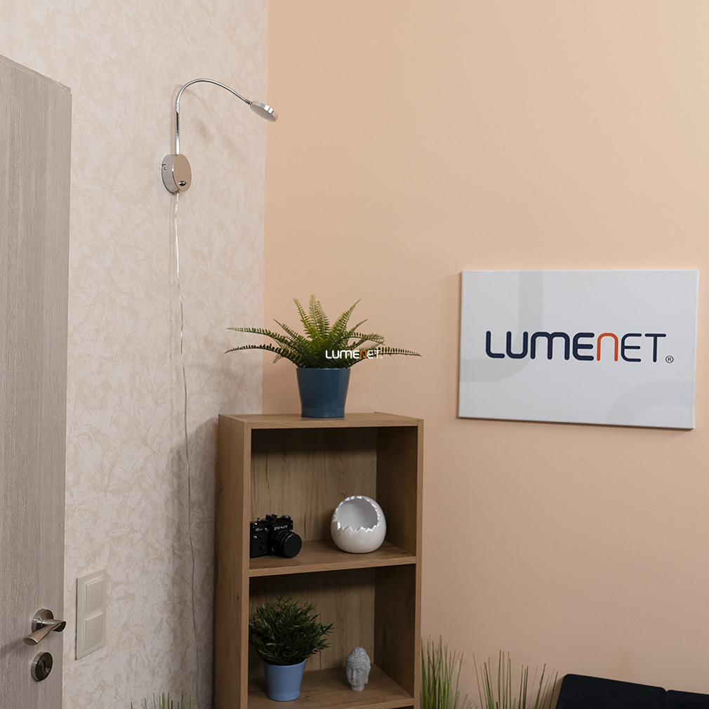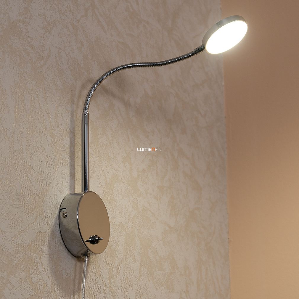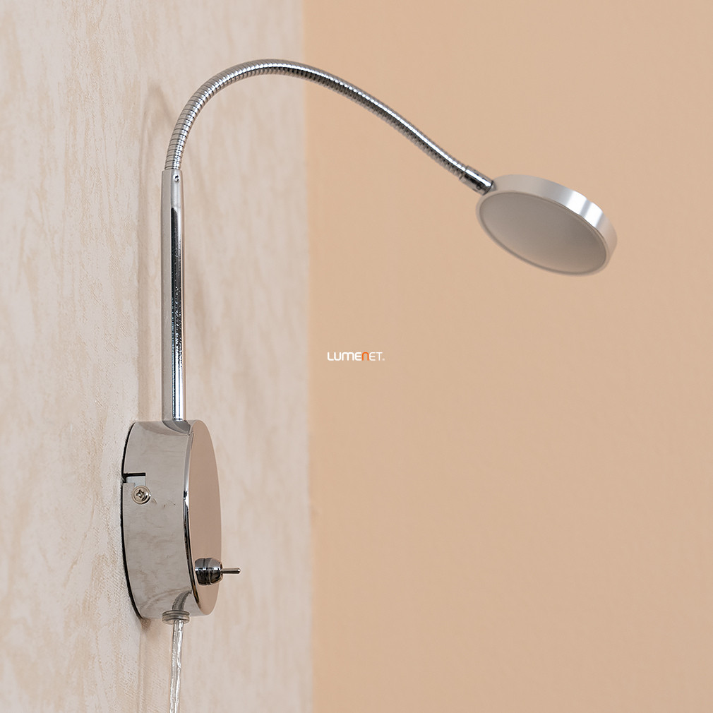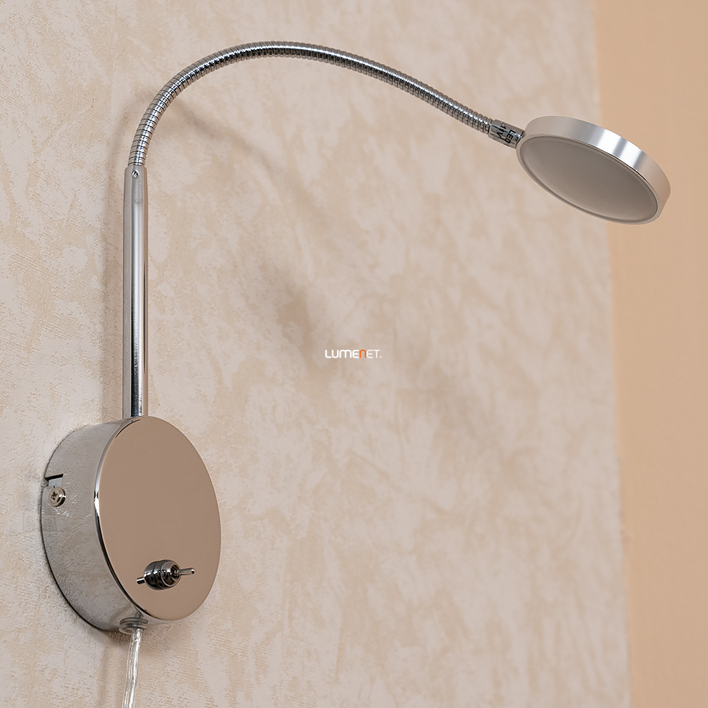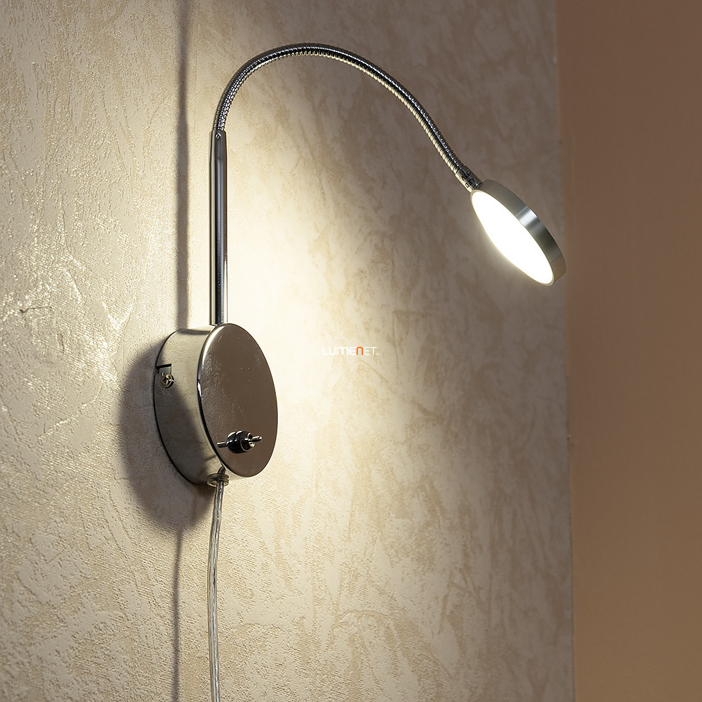 A Pegasi Globo 24103W flexibilis LED spot lámpa 6 W teljesítménnyel és 450 lumen fényárammal biztosít melegfehér, 3000 Kelvin színhőmérsékletű világítást. A modern stílusú lámpatest alumíniumból és üvegből készült, króm és opál színkombinációban. Az állítható kivitel révén a fény iránya egyszerűen módosítható, a beépített LED modul hosszú, 20 000 órás élettartamot kínál. A lámpa kapcsolóval szerelt, nem szabályozható, IP20 védettségű, így beltéri használatra alkalmas. Méretei: 300 mm hosszú, 90 mm széles és 510 mm magas, tömege 0,44 kg. A termék logisztikai kódja: 24103W.
