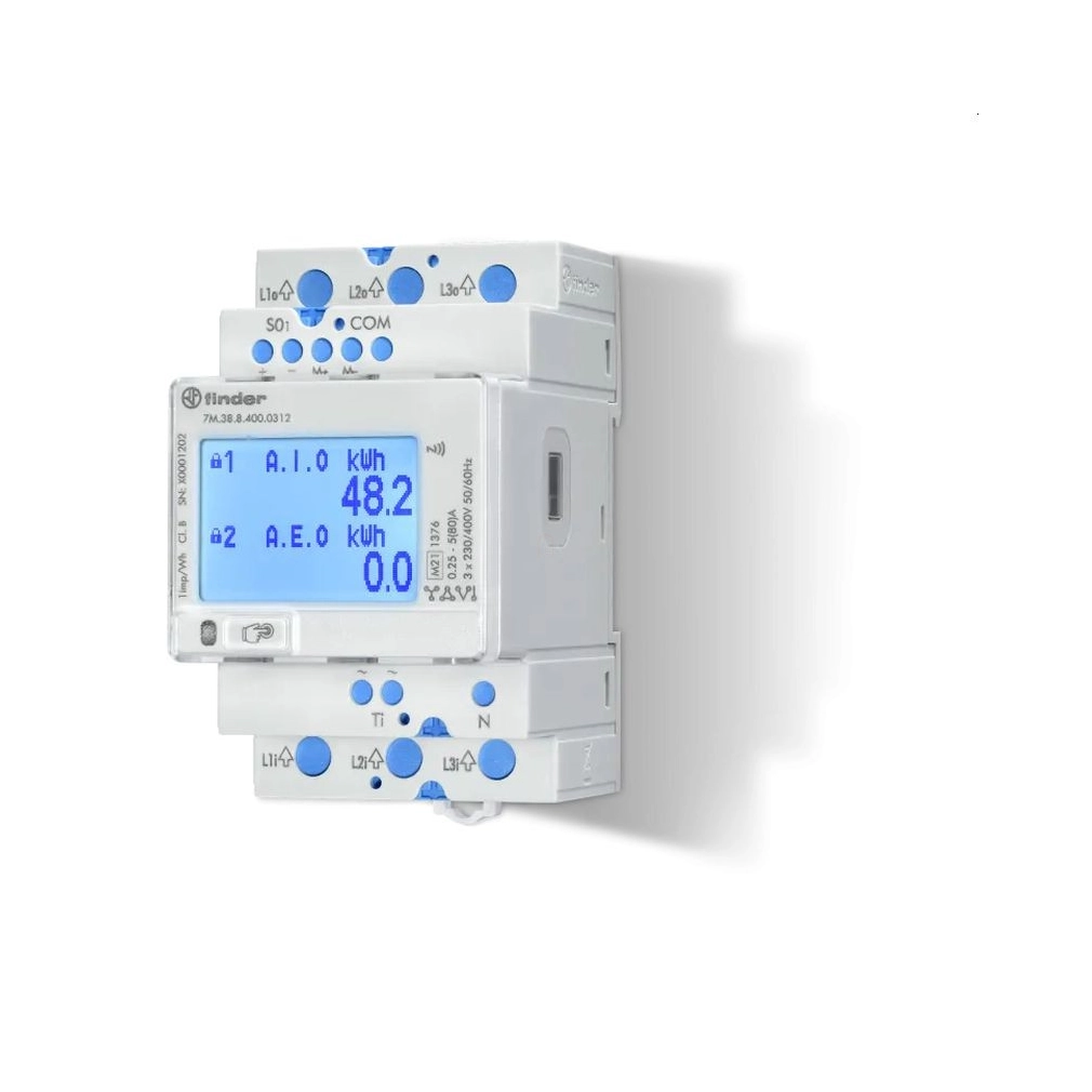 Finder 7M.38.8.400.0212 fogyasztásmérő 3F 80A digitális, MID hitelesített, MODBUS, DIN sínre