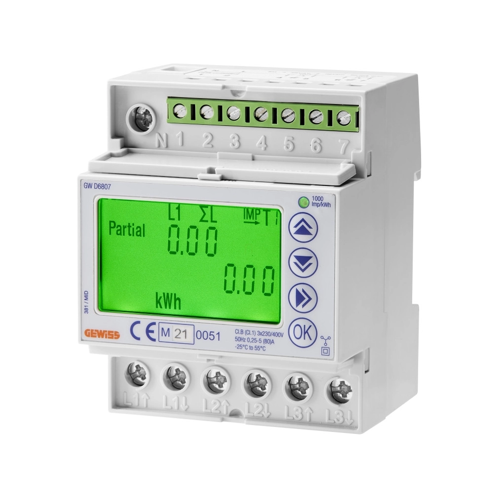 Fogyasztásmérő 3F 80A digitális, MID hitelesített ,DIN sínre, 4modulos közvetlen IP20 GWD6807