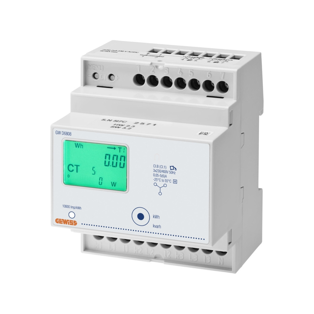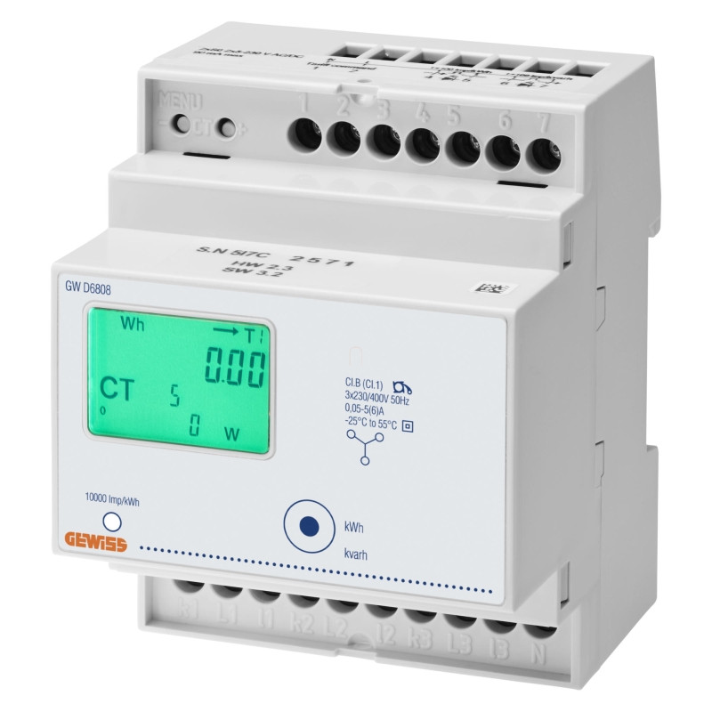 Gewiss Fogyasztásmérő áramváltós 3F digitális, NEM hitelesített, DIN sínre, 4modulos CT/5A IP20 GWD6808