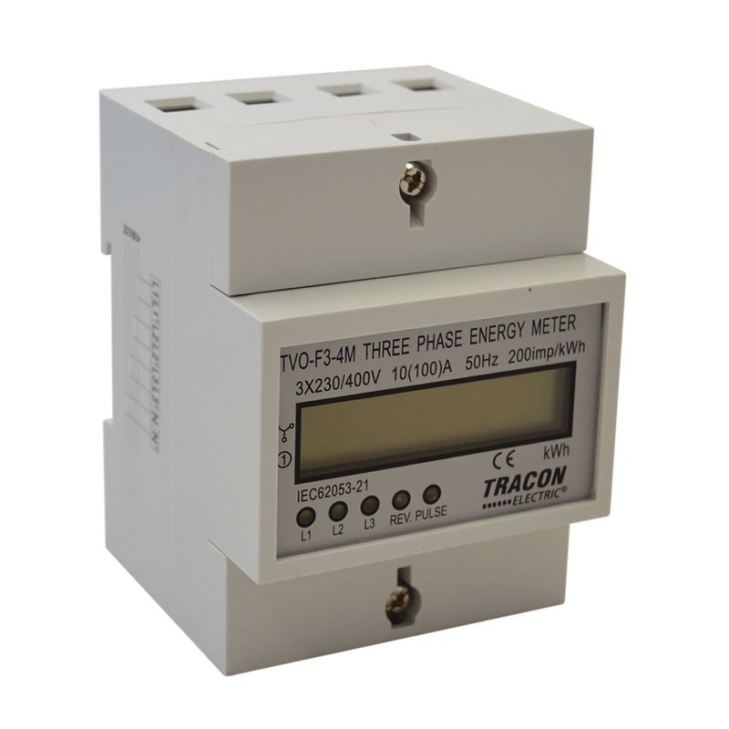 Fogyasztásmérő direkt 3F 100A digitális, DIN sínre, TVO-F3-4M Tracon