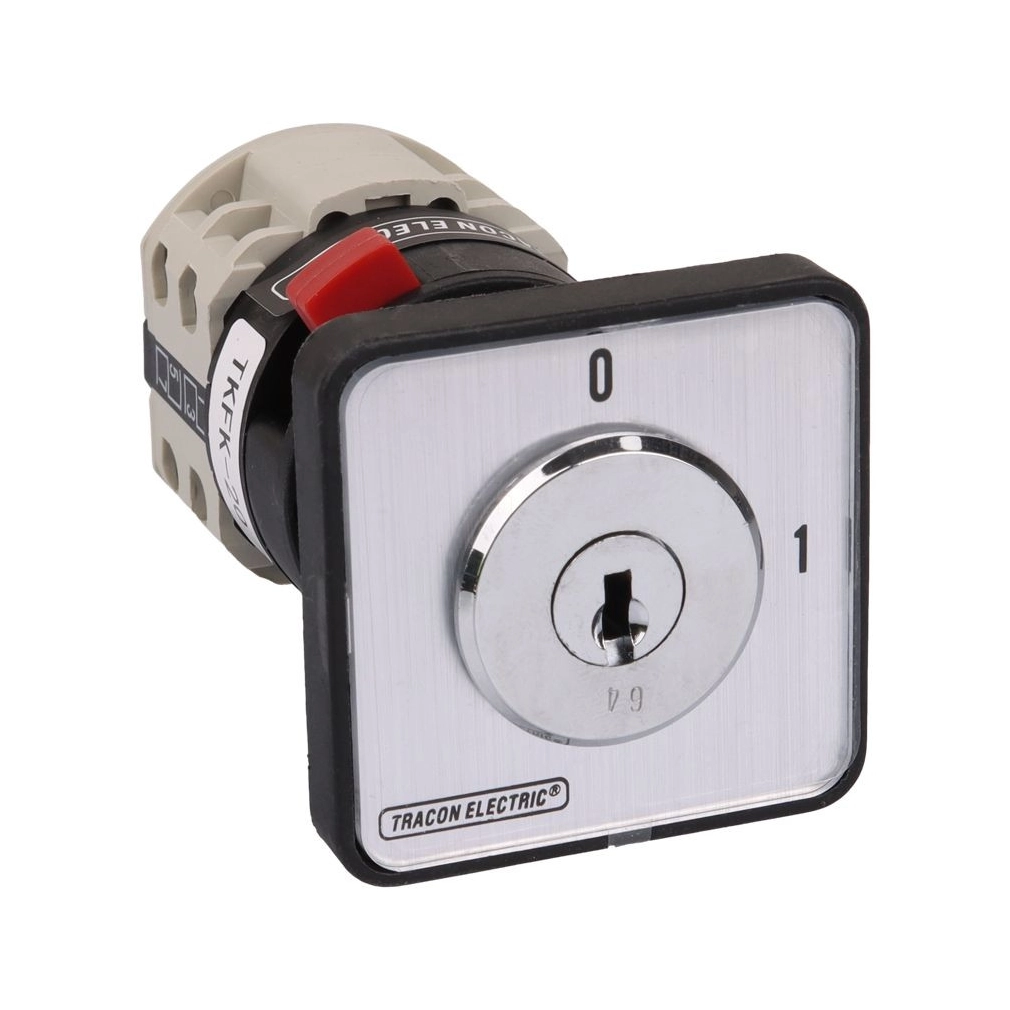 Főkapcsoló, kulcsos, BE-KI (Kulcs 0-állásban vehető ki) 400V, 50Hz, 25A, 4P, 5,5kW, 48×48mm TKFK-25 Tracon