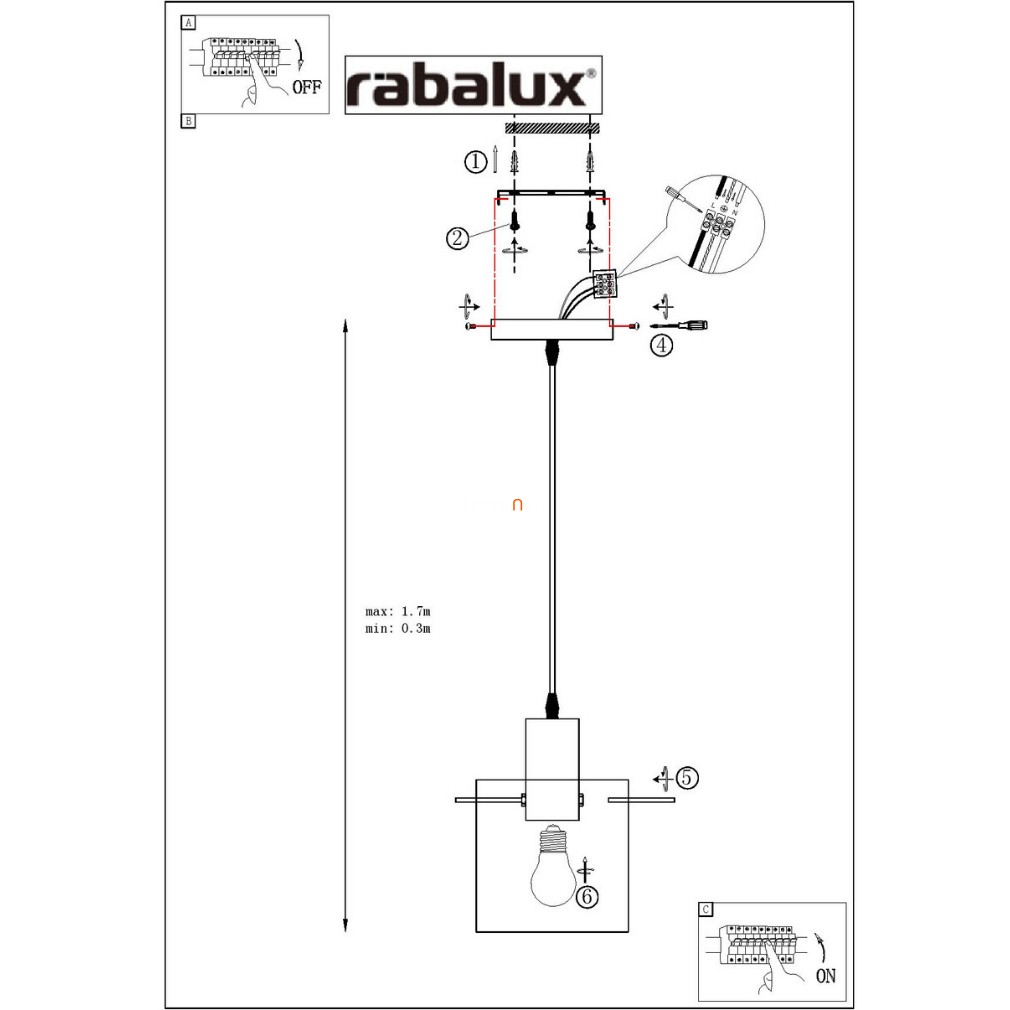 Függesztett lámpa, 150 cm - Donati Rábalux 5222