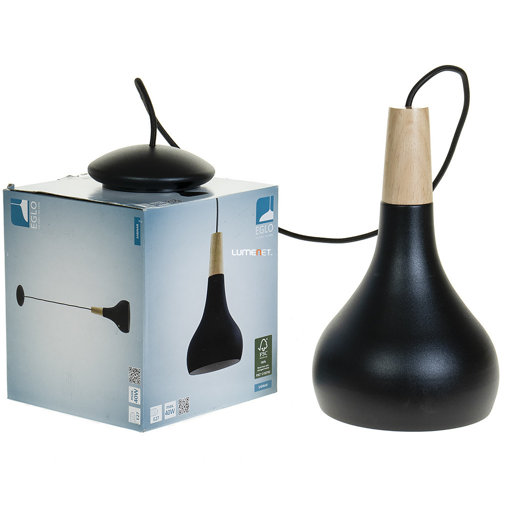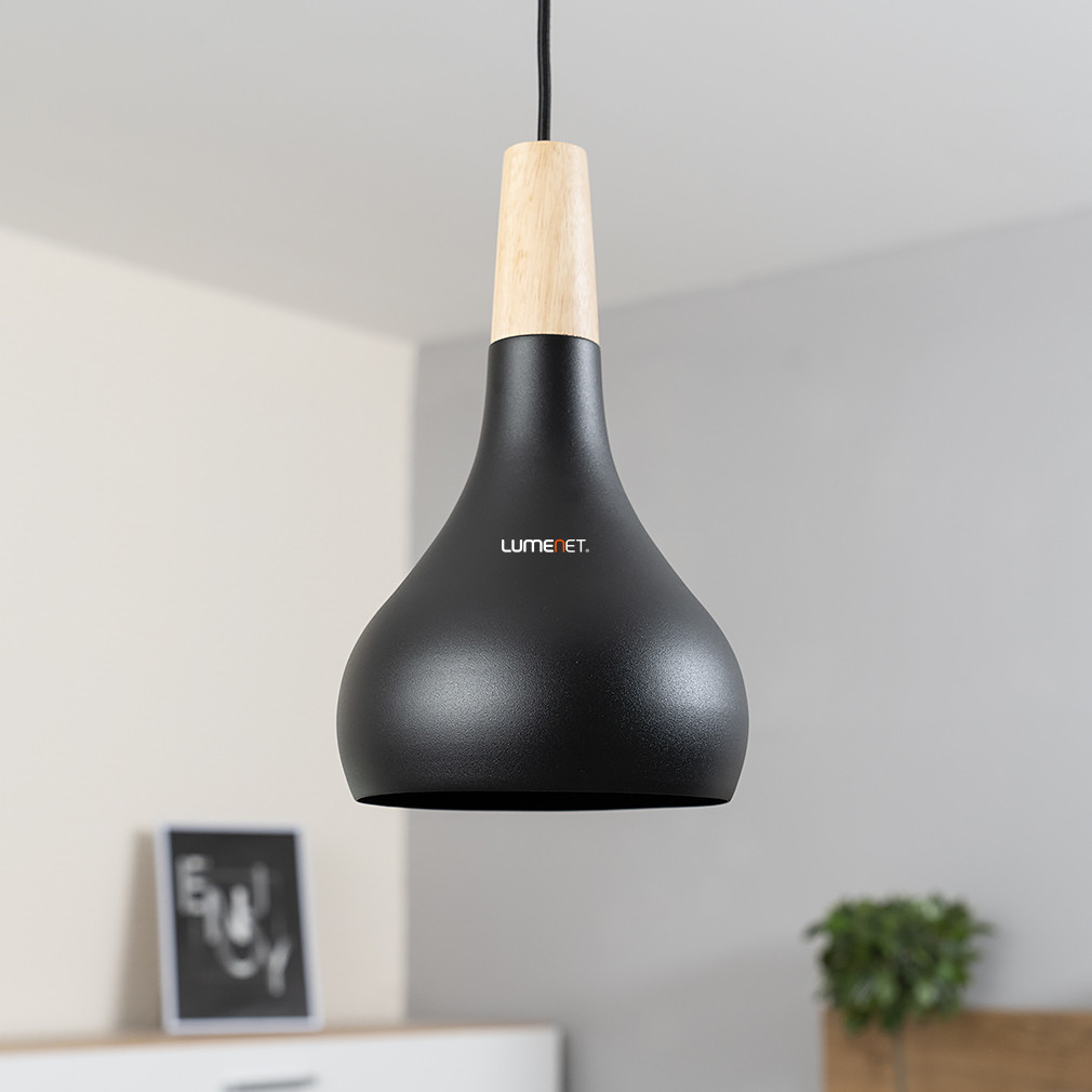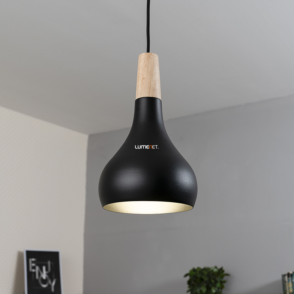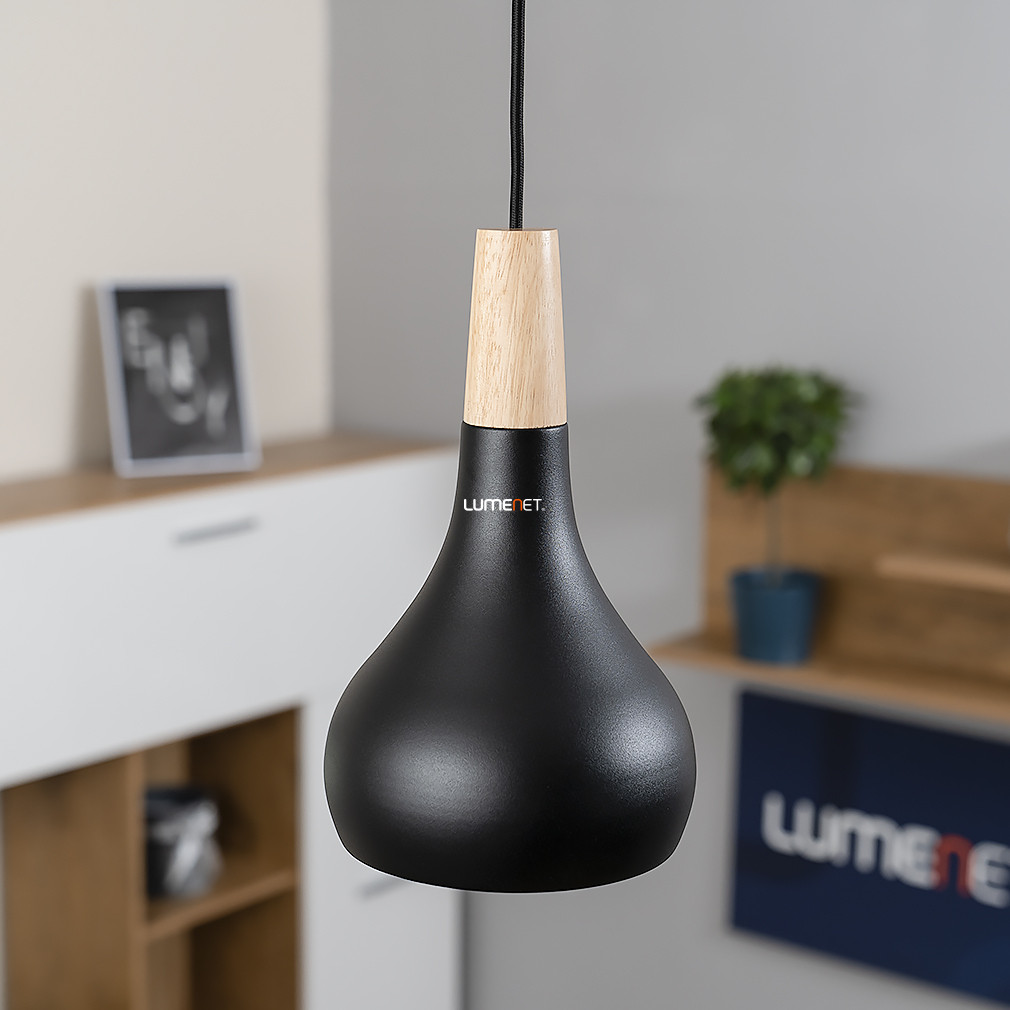 Függesztett lámpa, 18 cm, fekete-fa - Sabinar Eglo 900161