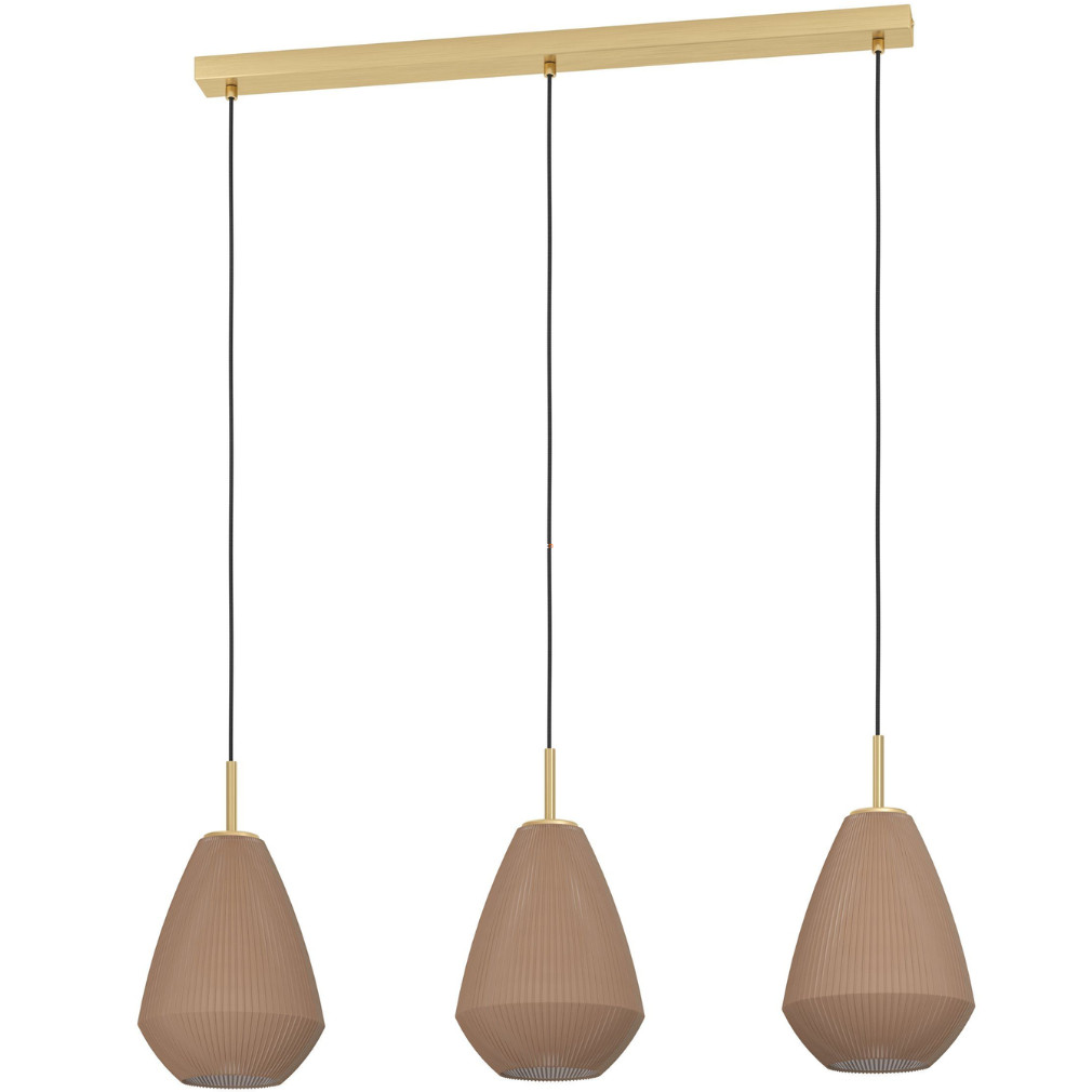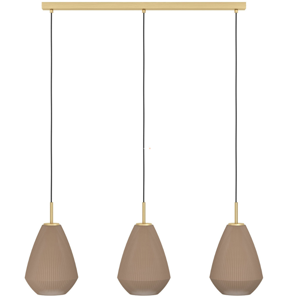 A Caprarola Eglo 900813 függesztett lámpa három E27-es foglalattal rendelkezik, így többféle cserélhető fényforrással kompatibilis. A lámpatest acélból és üvegből készült, felülete sárgaréz és homokszínű kivitelben jelenik meg. A termék teljes mérete 900 mm hosszú, 200 mm széles és 1100 mm magas, védettségi besorolása IP20, amely beltéri használatra teszi alkalmassá. A csomagolás méretei: 78 cm hosszú, 34 cm széles és 24 cm magas. A lámpa nem tartalmaz fényforrást, így a fényáram, színhőmérséklet és teljesítmény a választott izzótól függően változik. A termék tömege 3,395 kg, gyártója az EGLO.