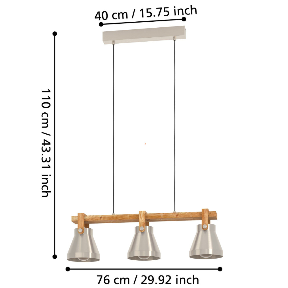 A Cawton Eglo 43952 függesztett lámpa három E27 foglalattal rendelkezik, így cserélhető fényforrásokkal működtethető. A lámpatest acél és fa kombinációjából készült, barna és ezüst színben, amely modern és természetes megjelenést kölcsönöz a belső térnek. A termék tömege 2,915 kg, méretei 760 mm hosszúság, 160 mm szélesség és 1100 mm magasság. A lámpa IP20 védettségi szinttel rendelkezik, amely beltéri használatra alkalmas. A csomag nem tartalmaz fényforrást, a 3xE27 foglalatnak köszönhetően különböző teljesítményű és színhőmérsékletű izzók alkalmazhatók. A gyártó az EGLO, a termék logisztikai kódja 43952.