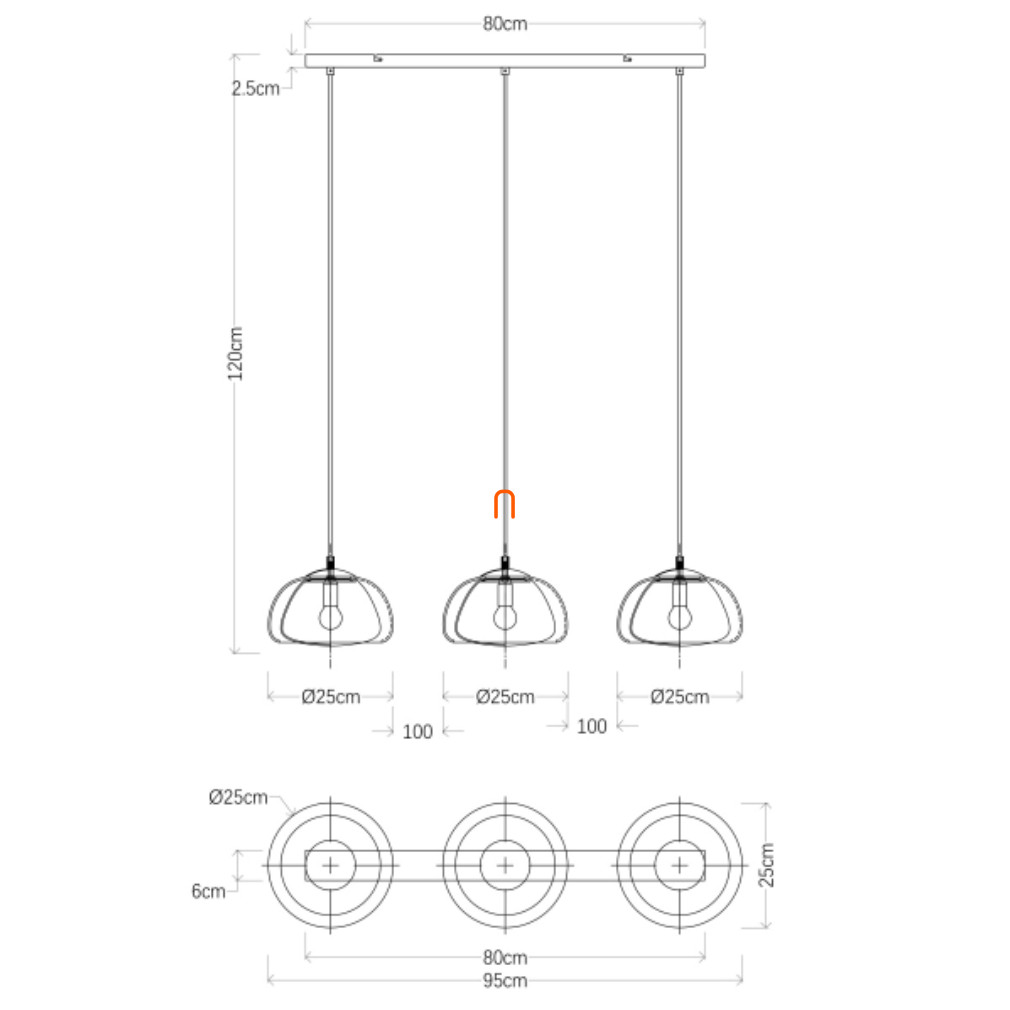 Függesztett lámpa 3 foglalattal, dupla falas üvegburákkal - Jella Globo 15743-3H
