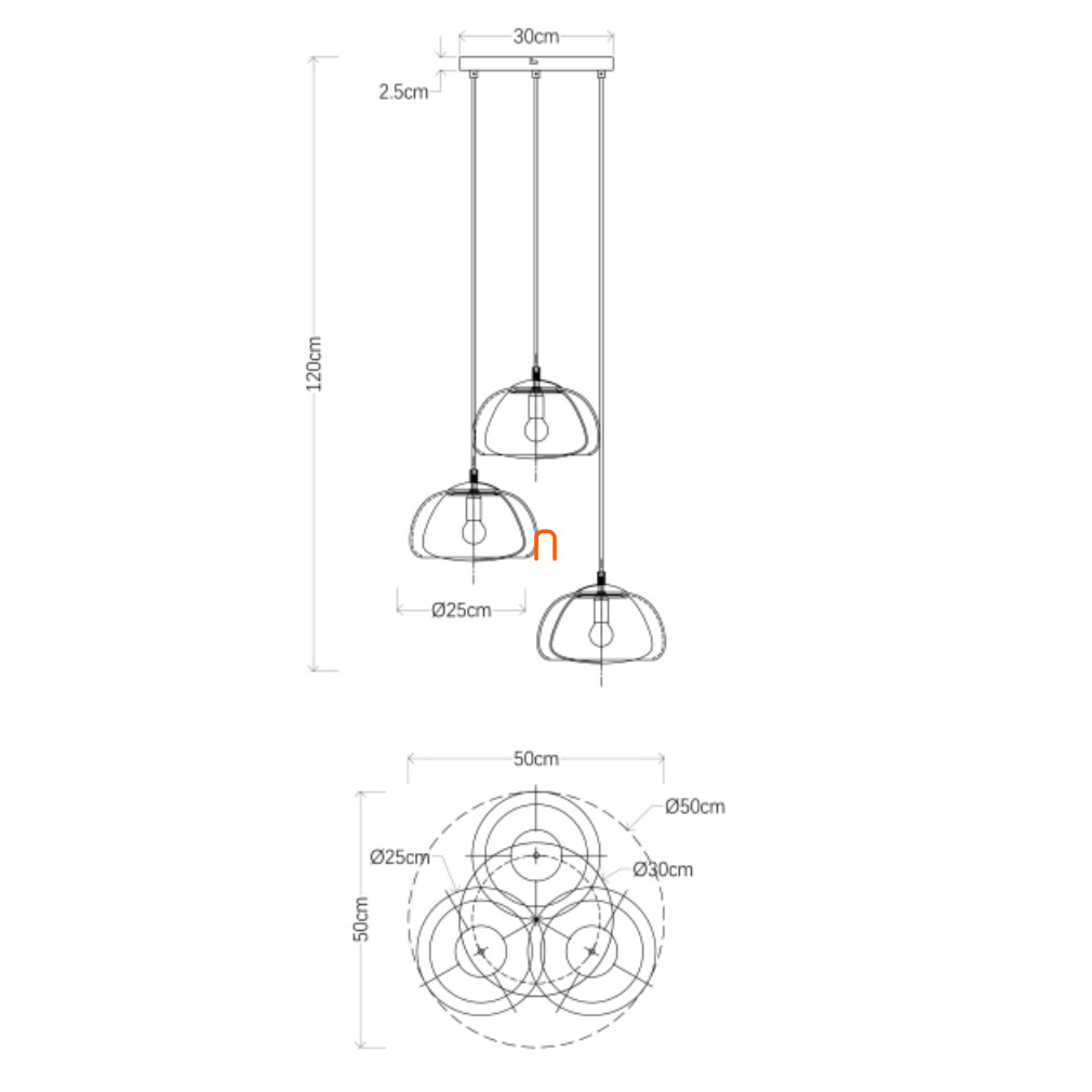 Függesztett lámpa 3 foglalattal, dupla falas üvegburákkal, kerek - Jella Globo 15743-3HR