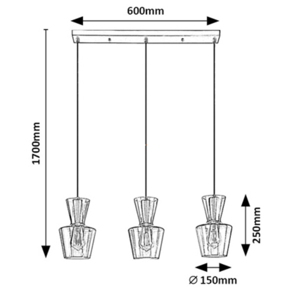 Függesztett lámpa 3 foglalattal, füstszínű - Abra Rábalux 72163