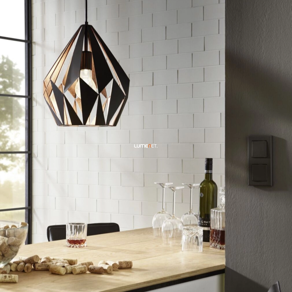 Függesztett lámpa, 31 cm, fekete-vörösréz - Carlton Eglo 49254