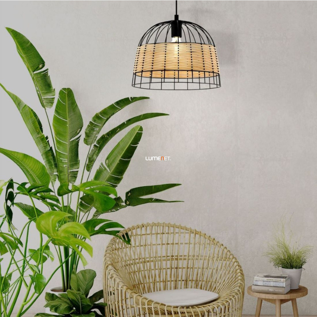 Függesztett lámpa, 37 cm, fekete-fa színű - Anwick Eglo 43311