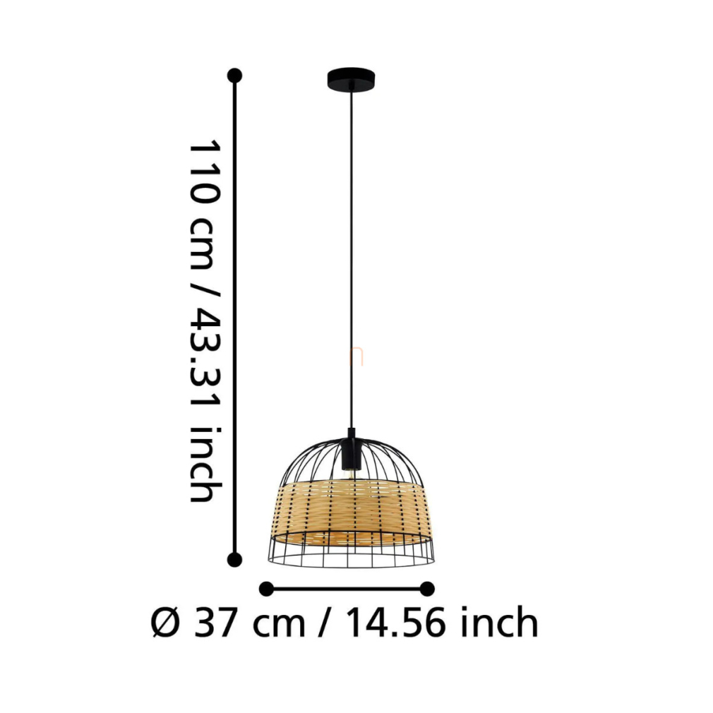 Az Anwick Eglo 43311 függesztett lámpa modern stílusával és 37 cm-es átmérőjével ideális választás otthoni világítási megoldásokhoz. A lámpatest acél és fa anyagokból készült, fekete-fa színkombinációban, amely letisztult megjelenést biztosít. Egy darab E27 foglalattal rendelkezik, amely cserélhető fényforrás használatát teszi lehetővé, így a fényáram, fényszín, teljesítmény és színhőmérséklet a választott izzótól függően alakítható. A termék nem szabályozható és nem tartalmaz fényforrást. A lámpa IP20 védettségi besorolással rendelkezik, ami beltéri használatra alkalmassá teszi. A termék tömege 1,5 kg, magassága 1100 mm, átmérője 370 mm. Csomagolási méretei: 38x38x29 cm. Gyártója az EGLO.